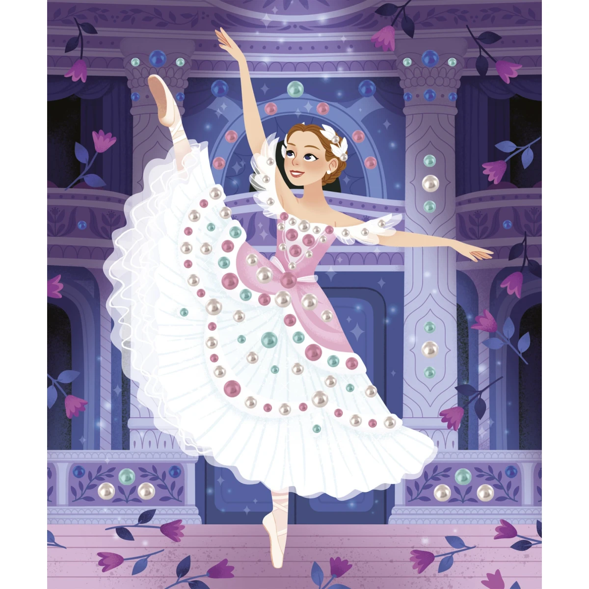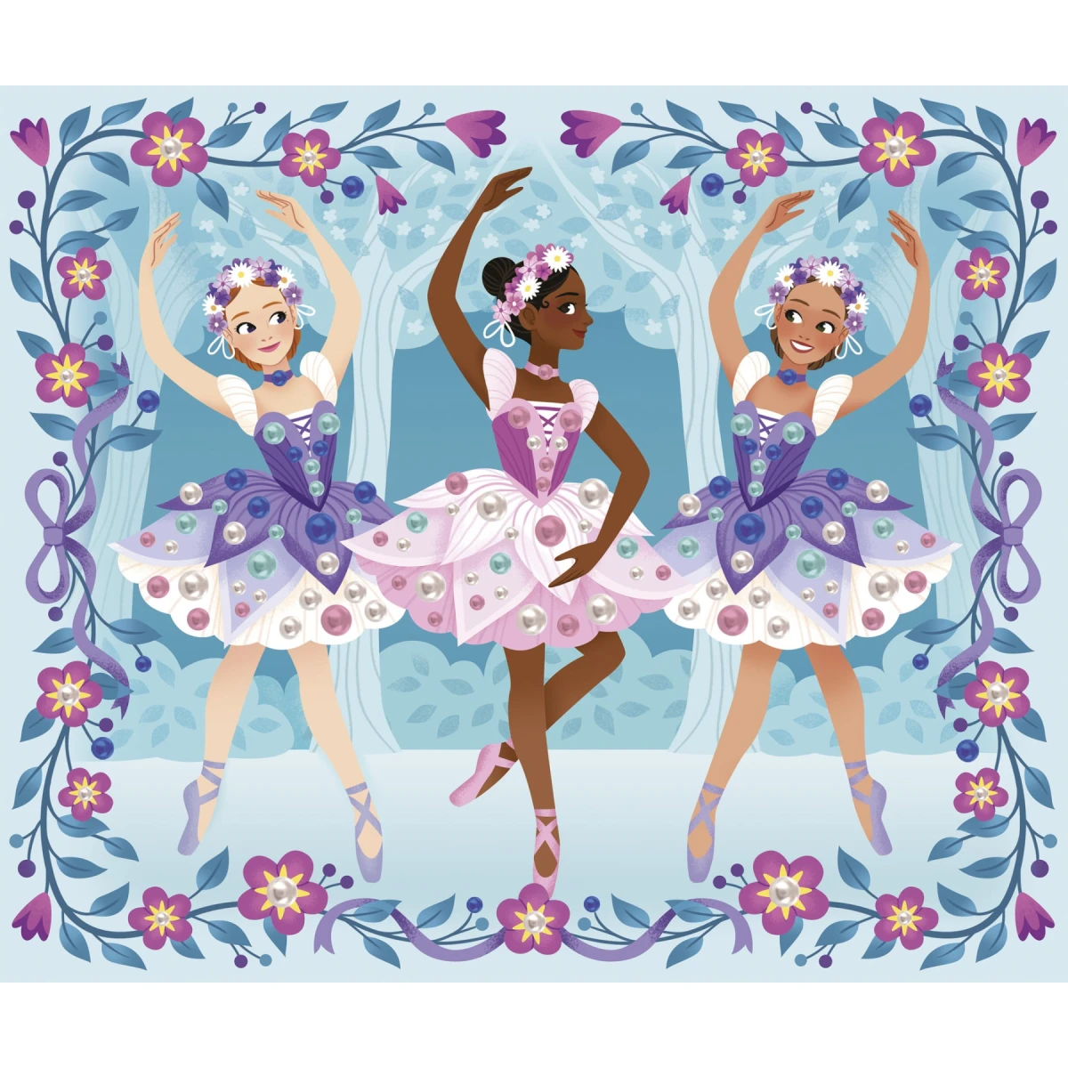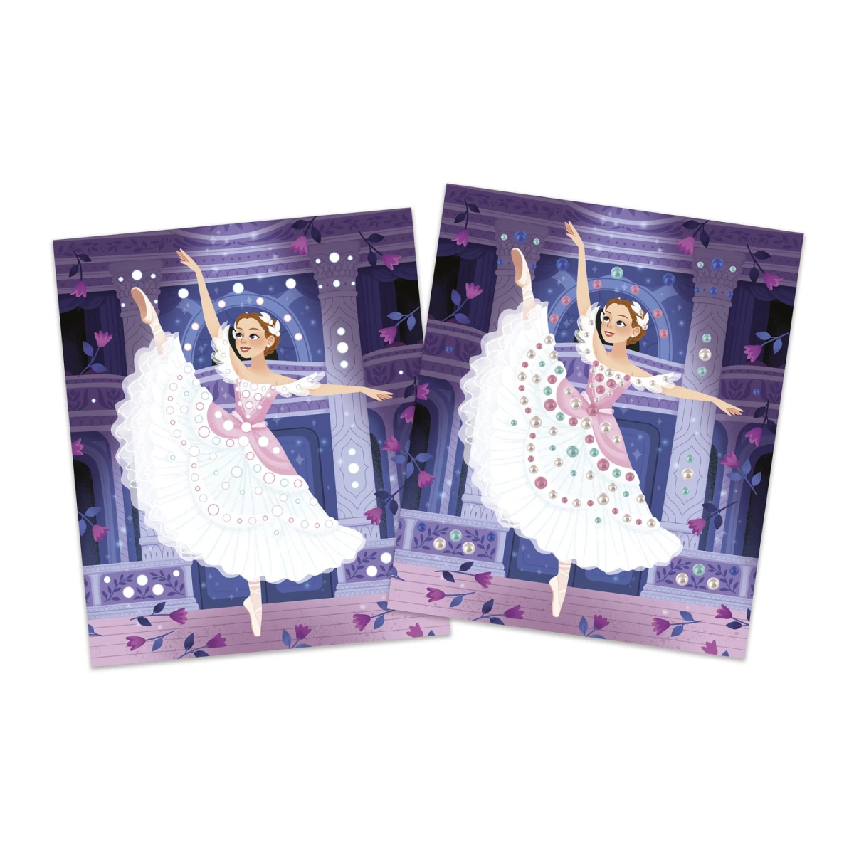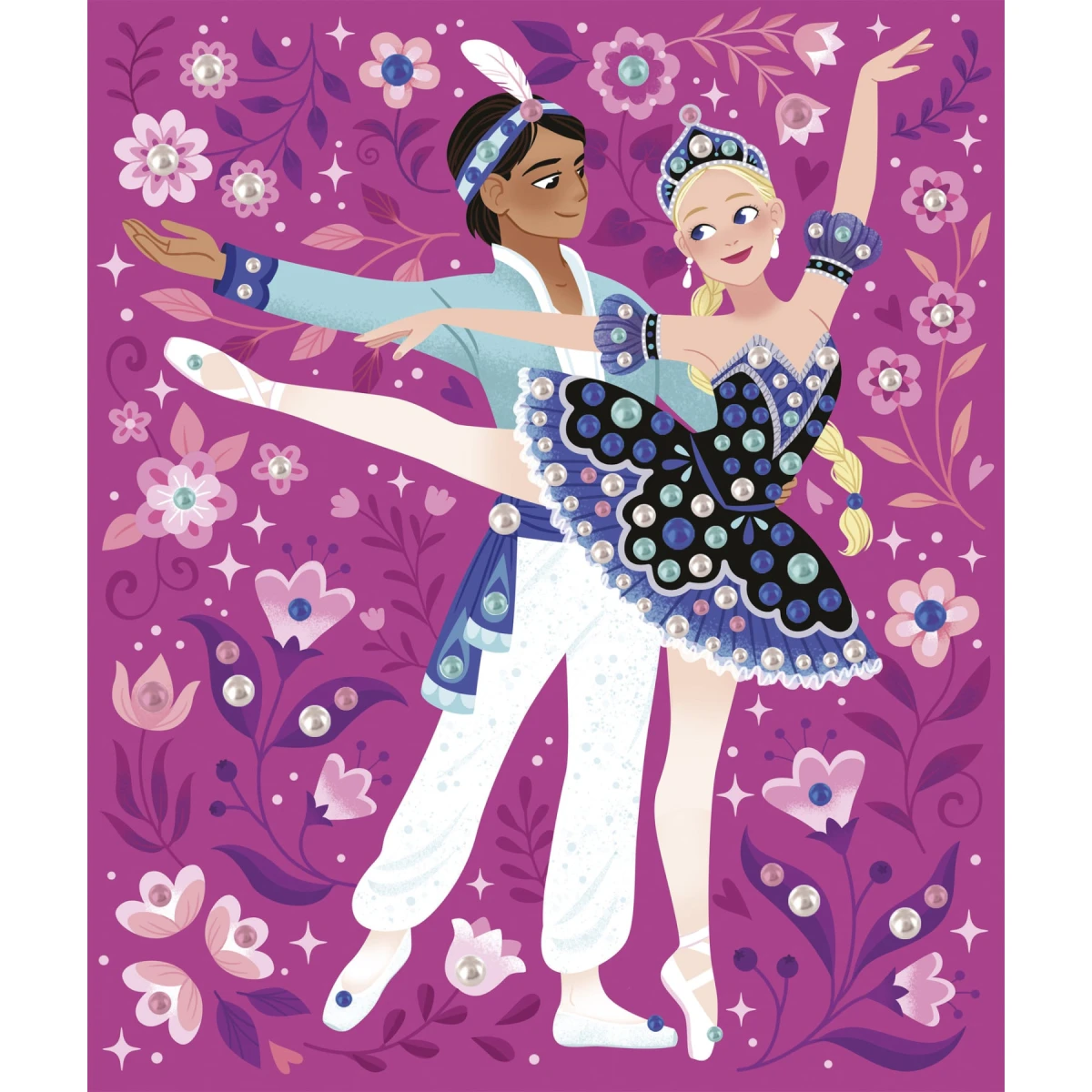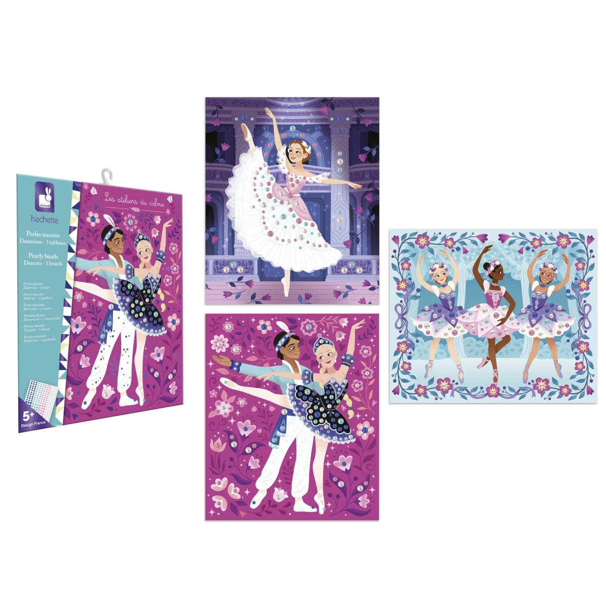 Tancujte! Táto sada na tvorenie sa dá použiť na ozdobenie 3 obrázkov tanečníc perleťovými korálkami.