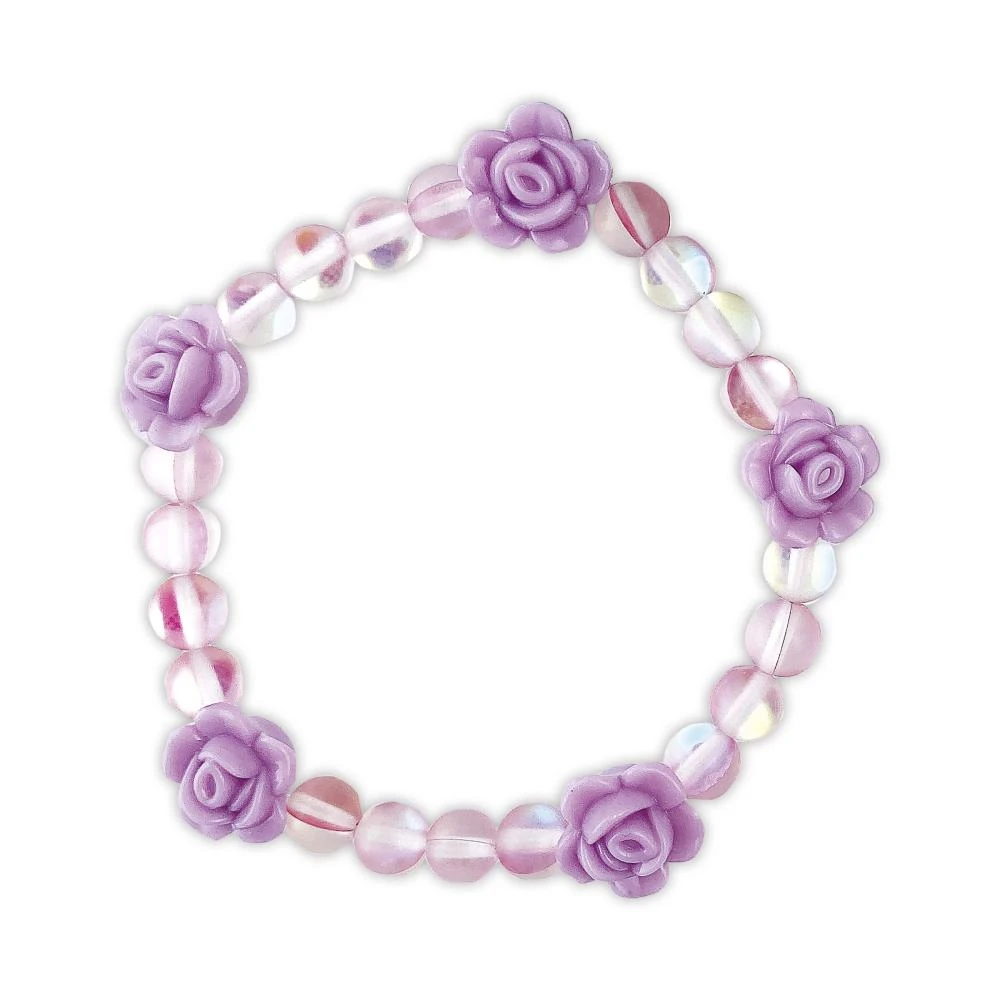 2 hubové prívesky, 8 korálikov v tvare ruže, 1 priehľadný kvet, 1 zlatý kvet, 2 listové prívesky, 50 rokajl korálikov, 2 zlaté korálky, 20 priehľadných ružových korálikov, 20 okrúhlych korálikov, zelenú elastickú niť, priehľadnú elastickú brožúru s návodmi.