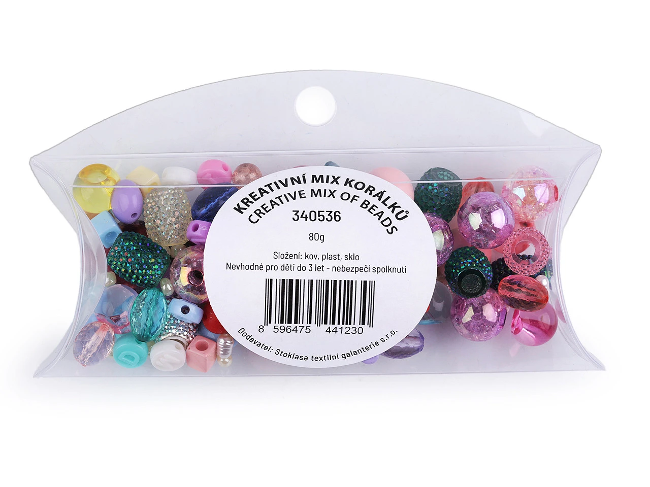 Kreatívny mix plastových, sklenených a kovových korálikov v priehľadnej okrúhlej dóze poteší malé aj veľké korálkárky. Sú skvelé na výrobu náramkov a náhrdelníkov a na rôzne dozdobovanie.