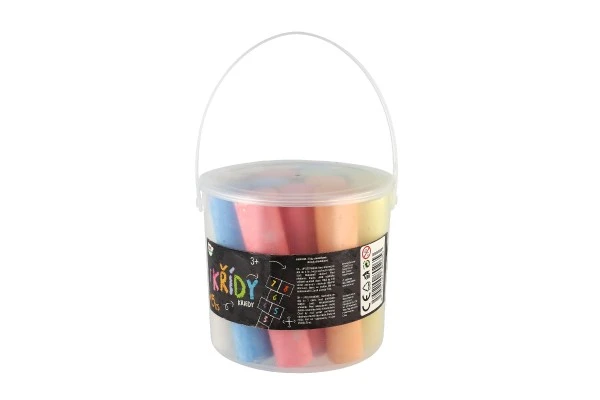 Balenie farebných kried v praktickom vedierku. Obsahuje 15 ks chodníkových kried. Vhodné na maľovanie na tabuľu, drevo, ale aj na asfalt.