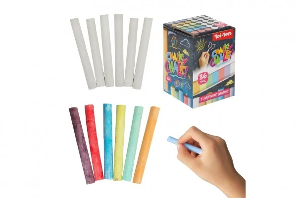 Kriedy tabuľové 36 ks biele + farebné 8 cm 24 m+