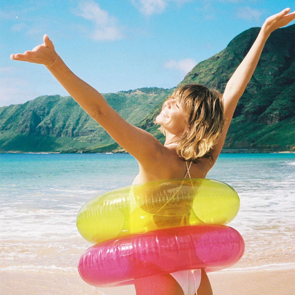 Výrazné farby prinášajú letnú energiu a zaistia, že budete na pláži aj pri bazéne neprehliadnuteľní. Vďaka kompaktnému prevedeniu je kruh ľahký, ľahko prenosný a po vyfúknutí skladný – ideálny na dovolenku aj každodenné použitie.
