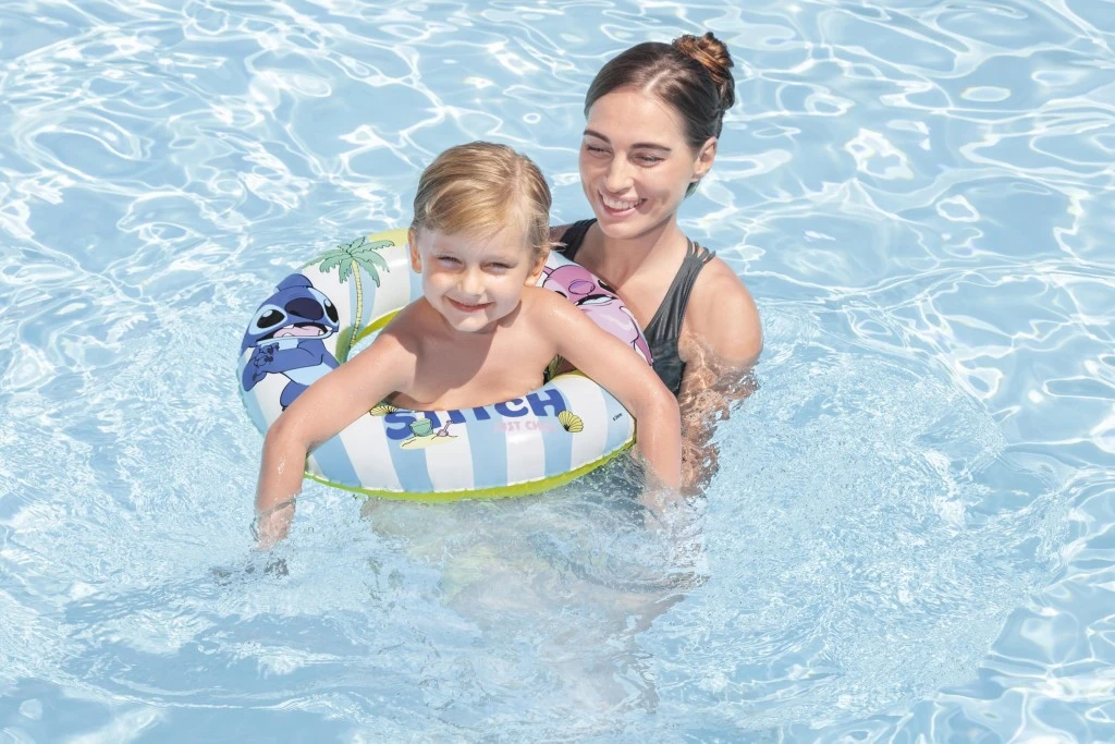 Kruh plávací Stitch s priemerom 56 cm je navrhnutý predovšetkým pre deti vo veku od 3 do 6 rokov a slúži ako bezpečná a zábavná pomôcka pri vodných hrách. Tento nafukovací kruh je vyrobený z pevného vinylového materiálu, ktorý zaisťuje dostatočnú odolnosť a dlhú životnosť pri bežnom používaní vo vode. Na jeho povrchu sú zobrazené veselo farebné a výrazné motívy postavičiek z populárnej Disney série Stitch, čo deťom dodáva ďalší prvok zábavy a atraktivity.
