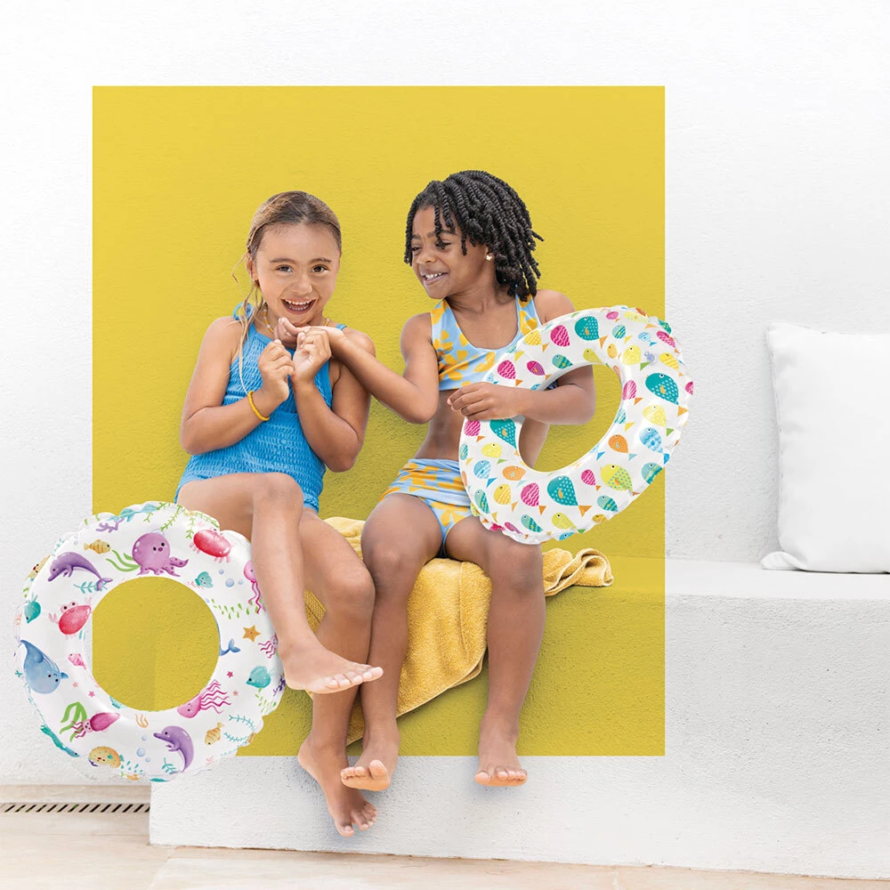 Na výber sú veselé motívy – ovocné vzory, rybičky alebo roztomilé morské bytosti, ktoré okamžite zaujmú a spríjemnia každé kúpanie. Vďaka výrazným farbám bude kruh neprehliadnuteľný na pláži aj pri bazéne.