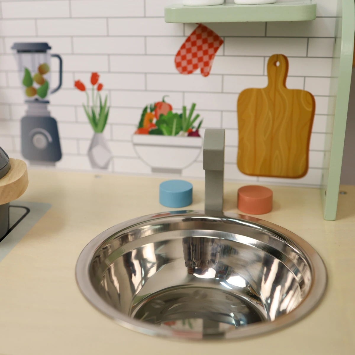 Neprehliadnuteľná detská kuchynka z dreva v pastelových farbách od Tooky Toy je skvelou hračkou na rolové hry na dospelých aj profesie.