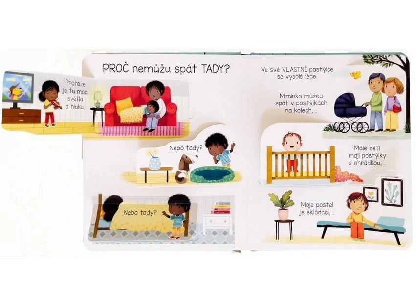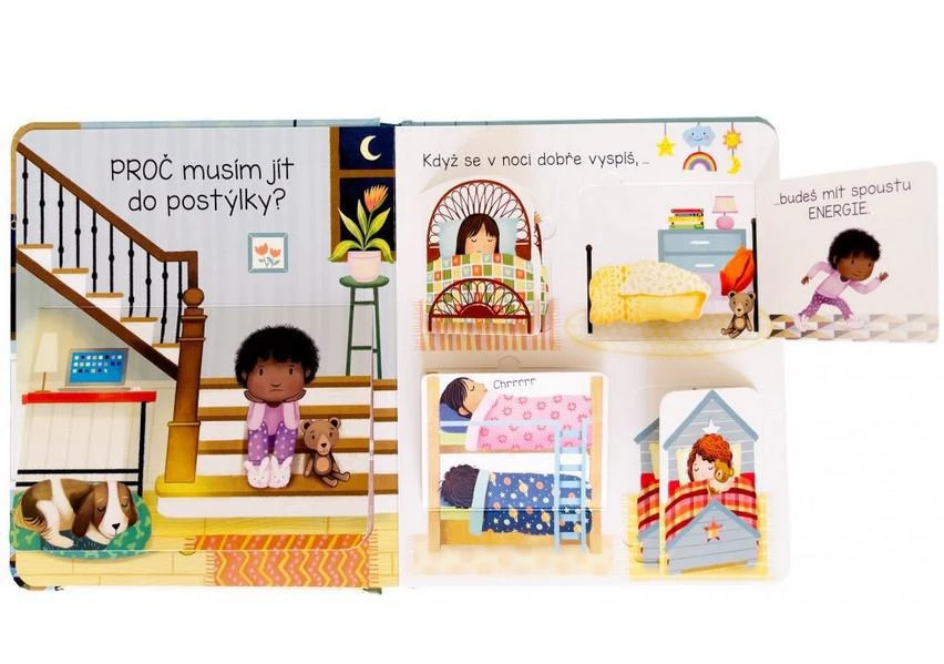Leporelo s odklápacími okienkami jednoducho a zrozumiteľne vysvetľuje, prečo je spánok pre naše telo i myseľ dôležitý, a tiež pomôže s radami, čo robiť pred spaním.