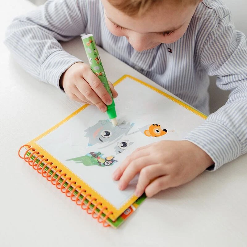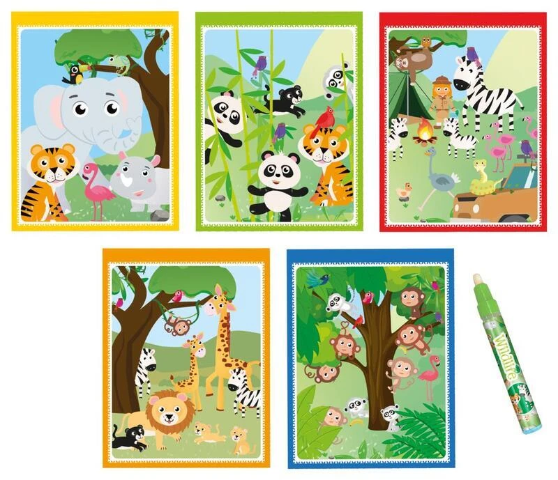 Sada obsahuje 5 znovupoužiteľných obrázkových plôch z tvrdého kartónu s motívmi divokých zvierat a špeciálne pero na vodu, ktoré sa ľahko znova dopĺňa. Maľovanie podporuje jemnú motoriku, sústredenie a kreativitu dieťaťa, navyše je ideálna aj na cesty.