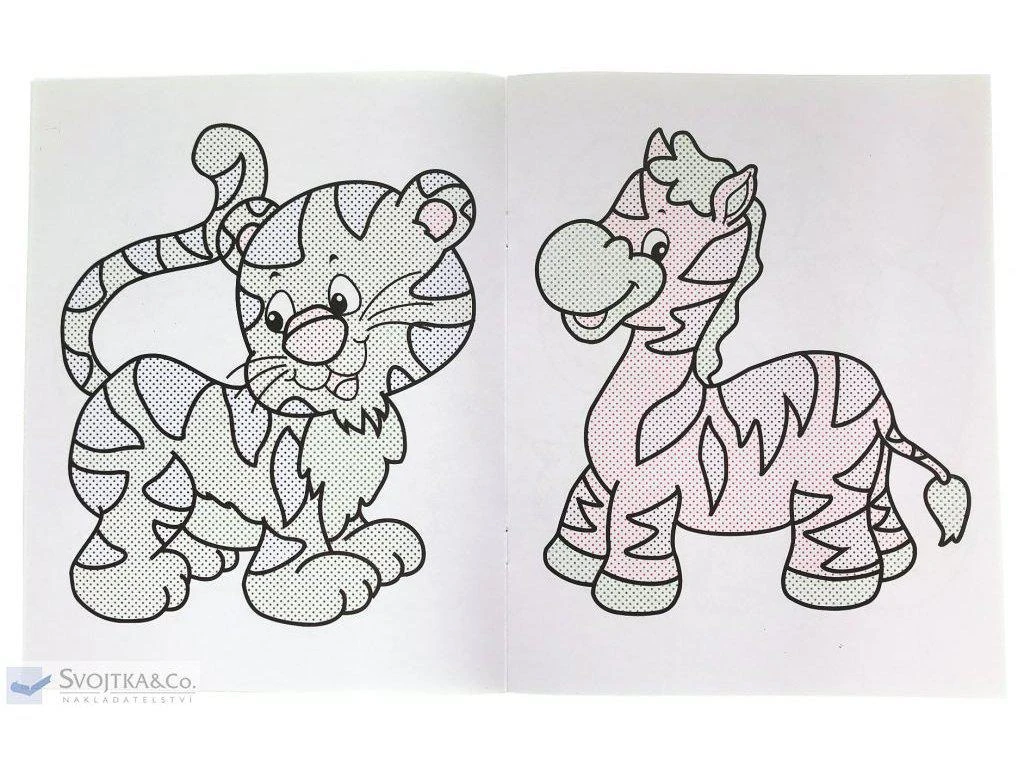 Zebra, psík, sova, korytnačka... Stránky tohto zošita sú plné kúzelných obrázkov. Vezmi si štetec a pretri ich vodou. Uvidíš, ako sa objavia nové farby. Nápoveda na obálke ti povie, aké nové farby môžeš v obrázkoch očakávať. Uži si maľovanie!