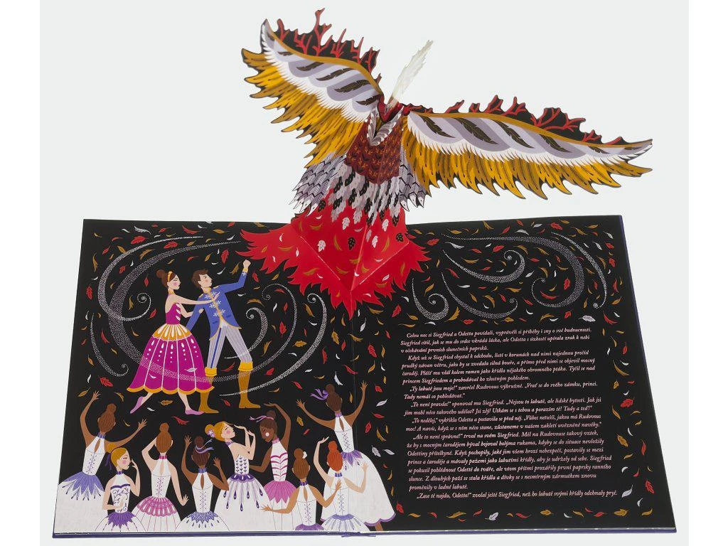 "Volám sa Odetta. Zlý černokňažník Rudovous zaklial ma aj moja priateľka. Jeho kúzla majú nesmiernu silu, nemožno ich prelomiť. Cez deň musíme žiť začarované v labute a svoju skutočnú podobu nadobúdame len v noci." Mladý princ Siegfried práve dosiahol plnoletosť a musí si vybrať manželku. Zaľúbenie nájde v pôvabnej princeznej Odette, ktorá je zakliata v podobe labute a len pravá láska ju môže vyslobodiť. Podarí sa princovi zlomiť zlú kliatbu? Kúzelný príbeh o spanilých labutiach a sile lásky je známy svojim baletným spracovaním. Táto krásna pop-up kniha prerozpráva pôvodný príbeh aj známe libreto Čajkovského baletu spôsobom, ktorý je prístupný a pútavý pre malých čitateľov. Vďaka úžasným pop-up ilustráciám, ktoré príbeh inovatívne oživujú, sleduje táto kniha mladého princa a zakliatu princeznú, ako si poradí s nástrahami zlého kúzelníka. Bude mať náš príbeh šťastný koniec? Jednoduché a elegantné prerozprávanie príbehu v kombinácii s dômyselnými a uchvacujúcimi pop-up ilustráciami robí z tejto knihy skutočný poklad každej knihovničky.