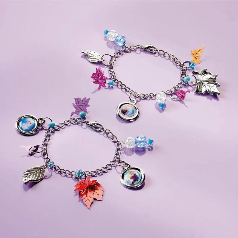 Ľadové kráľovstvo II - vyrob si náramky so striebornými príveskami, ktoré ozdobíš svojimi obľúbenými postavičkami Ľadového kráľovstva II. Vynikajúca hračka pre rozvoj manuálnej zručnosti. Všetko potrebné na výrobu nájdete vo vnútri balenia.