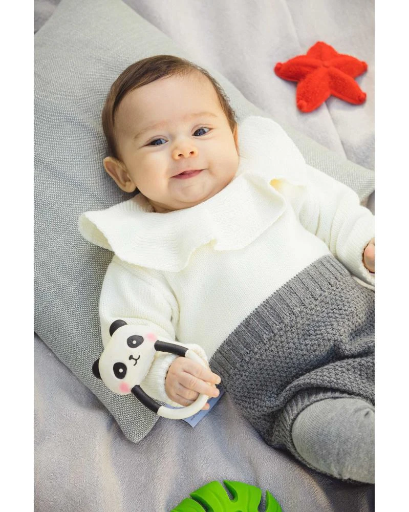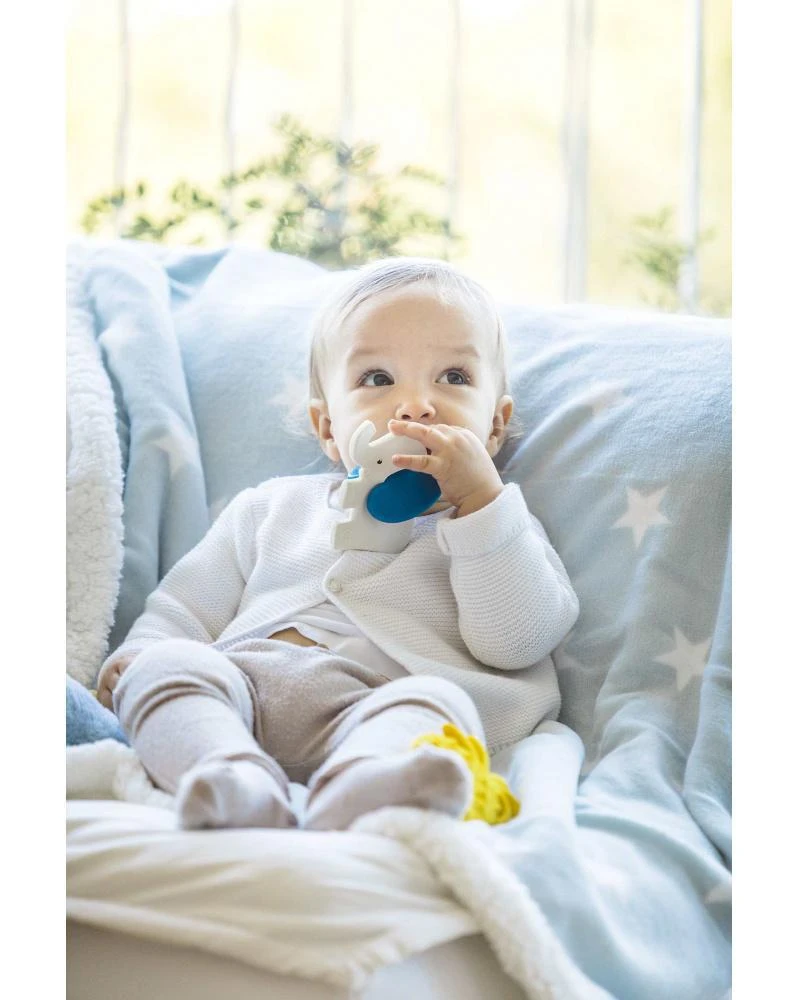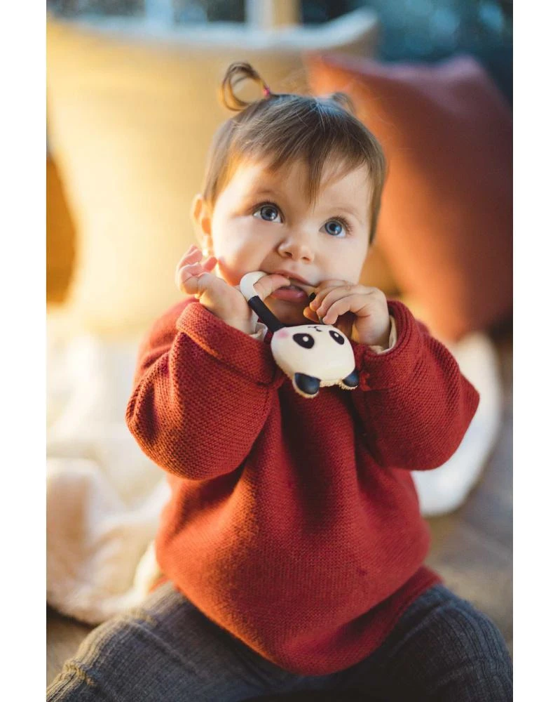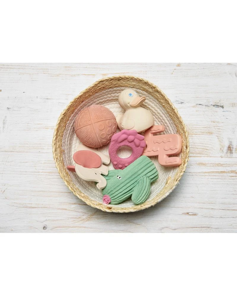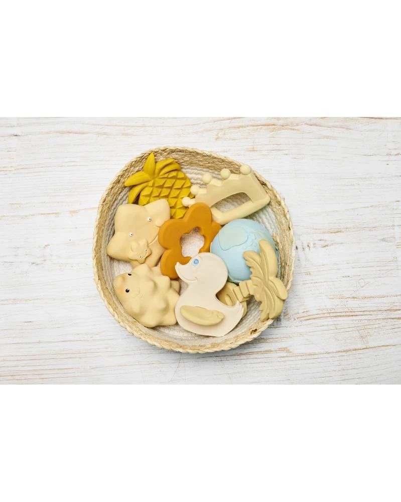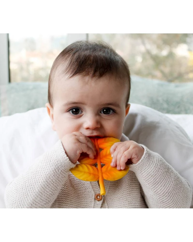 Bezpečné pre novorodencov i batoľatá. Ideálna pri prerezávaní prvých zúbkov. Ľahko uchopiteľné aj tou najmenšou ručičkou. Jedinečná vôňa a chuť prírodnej gumy je u detí veľmi obľúbená. Ručne maľované bezpečnými farbami na rastlinnej báze.