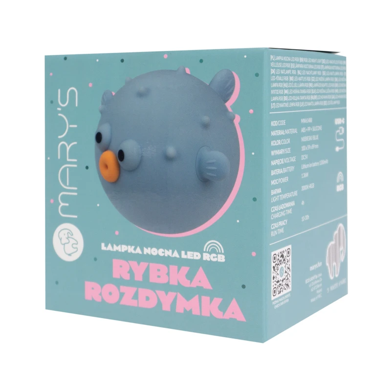 LED silikónová nočná lampička dotyková Rgb Puffer Fish, modrá Mary's