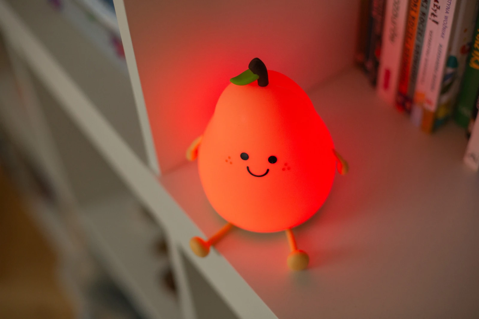 Roztomilá silikónová LED nočná lampička Mary's v tvare hrušky s Rgb podsvietením vnesie do izby jemné, upokojujúce svetlo a hravú atmosféru, ktorá spríjemní zaspávanie aj večerný odpočinok.