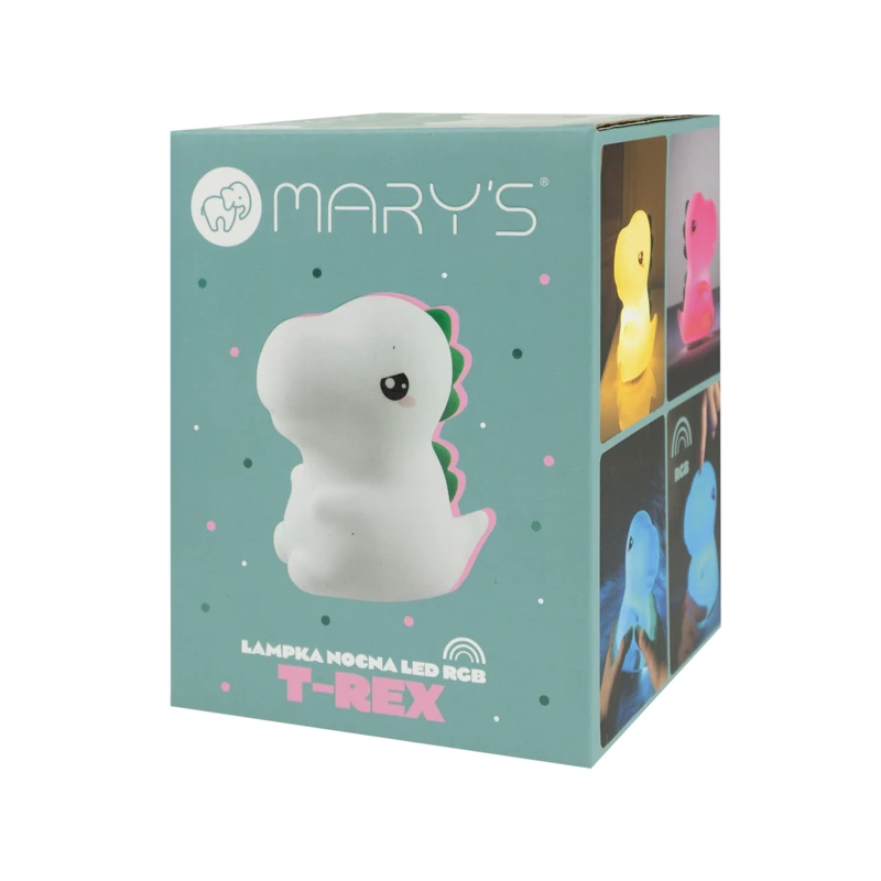 Roztomilá silikónová LED nočná lampička T-Rex Mary's s Rgb podsvietením vnesie do každej izby hravú atmosféru, jemné svetlo na pokojné zaspávanie a radosť pre deti i dospelých.