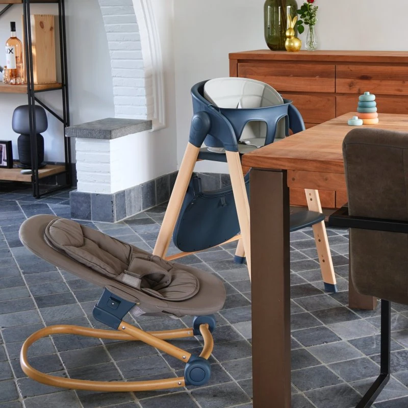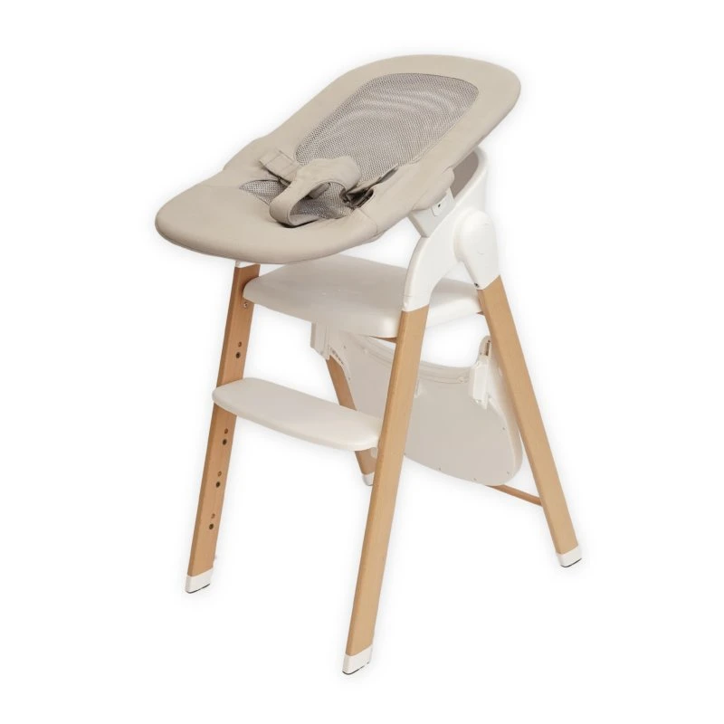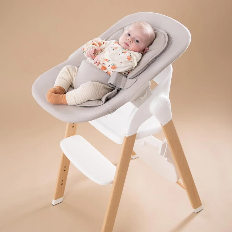 Jemné hojdanie, ktoré sa dá ľahko aktivovať jednoduchým dotykom ruky, napodobňuje upokojujúce pohyby, na ktoré bolo bábätko zvyknuté ešte pred narodením. S postupujúcim vekom dieťaťa a jeho rastúcou túžbou byť súčasťou rodinného diania prichádza k slovu druhá, nemenej dôležitá funkcia lehátka Grow With Me. Keď nastane čas spoločných rodinných jedál, je možné tento multifunkčný produkt jednoducho pripevniť k vysokej stoličke Grow With Me, čím vznikne perfektné sedátko pre malého stolovníka. Dieťatko tak môže byť súčasťou rodinných rituálov pri stole už od najútlejšieho veku, čo pozitívne podporuje jeho sociálny vývoj a vytvára dôležité rodinné väzby, ktoré formujú osobnosť dieťaťa na celý život.
