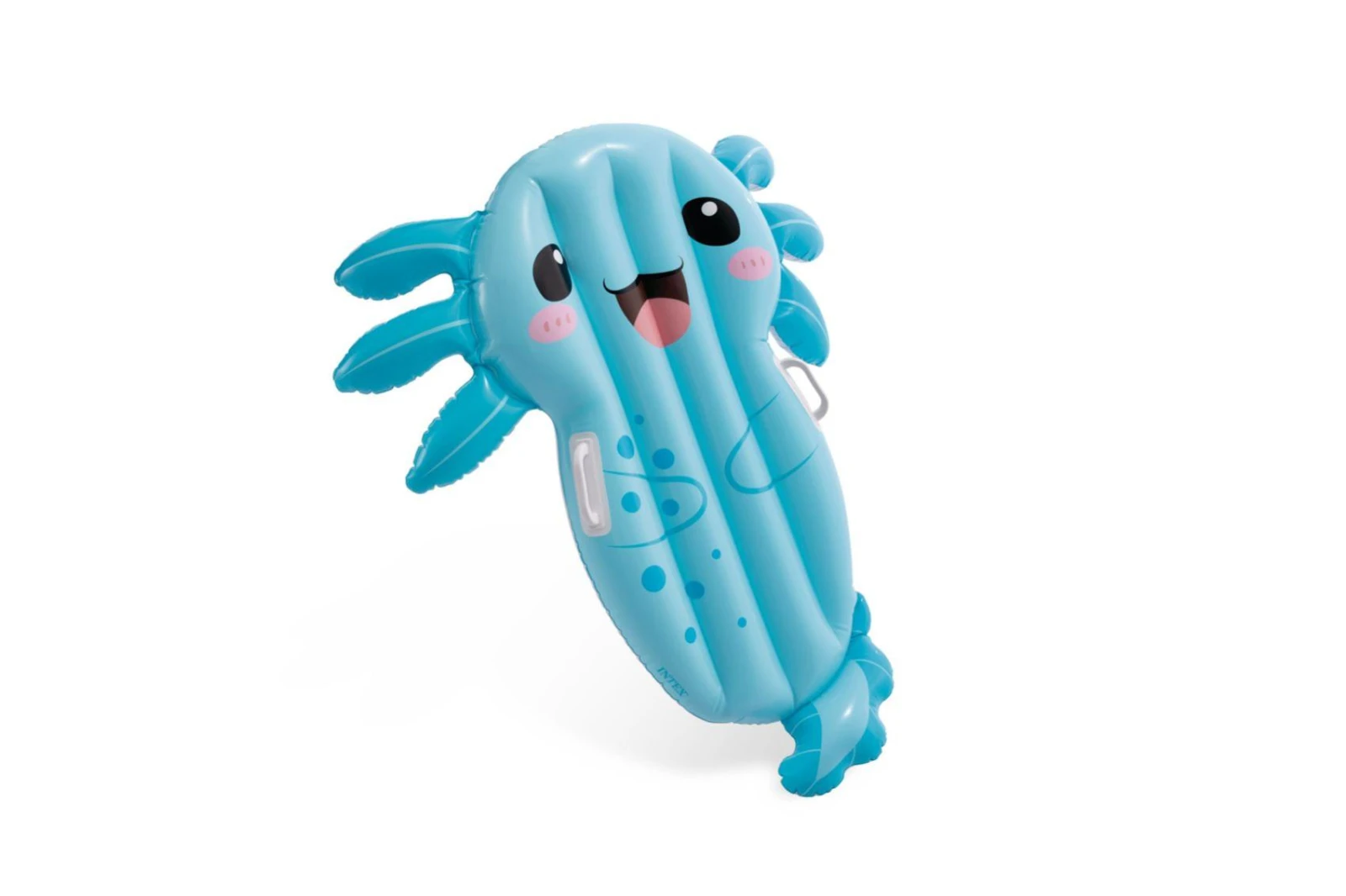 Nafukovacie lehátko axolotl s úchytmi je hravá vodná pomôcka pre deti aj letný relax pri bazéne či mori. Roztomilý dizajn axolotla priťahuje pozornosť a vďaka praktickým úchytom poskytuje deťom lepšiu stabilitu pri plávaní a šantení vo vode.