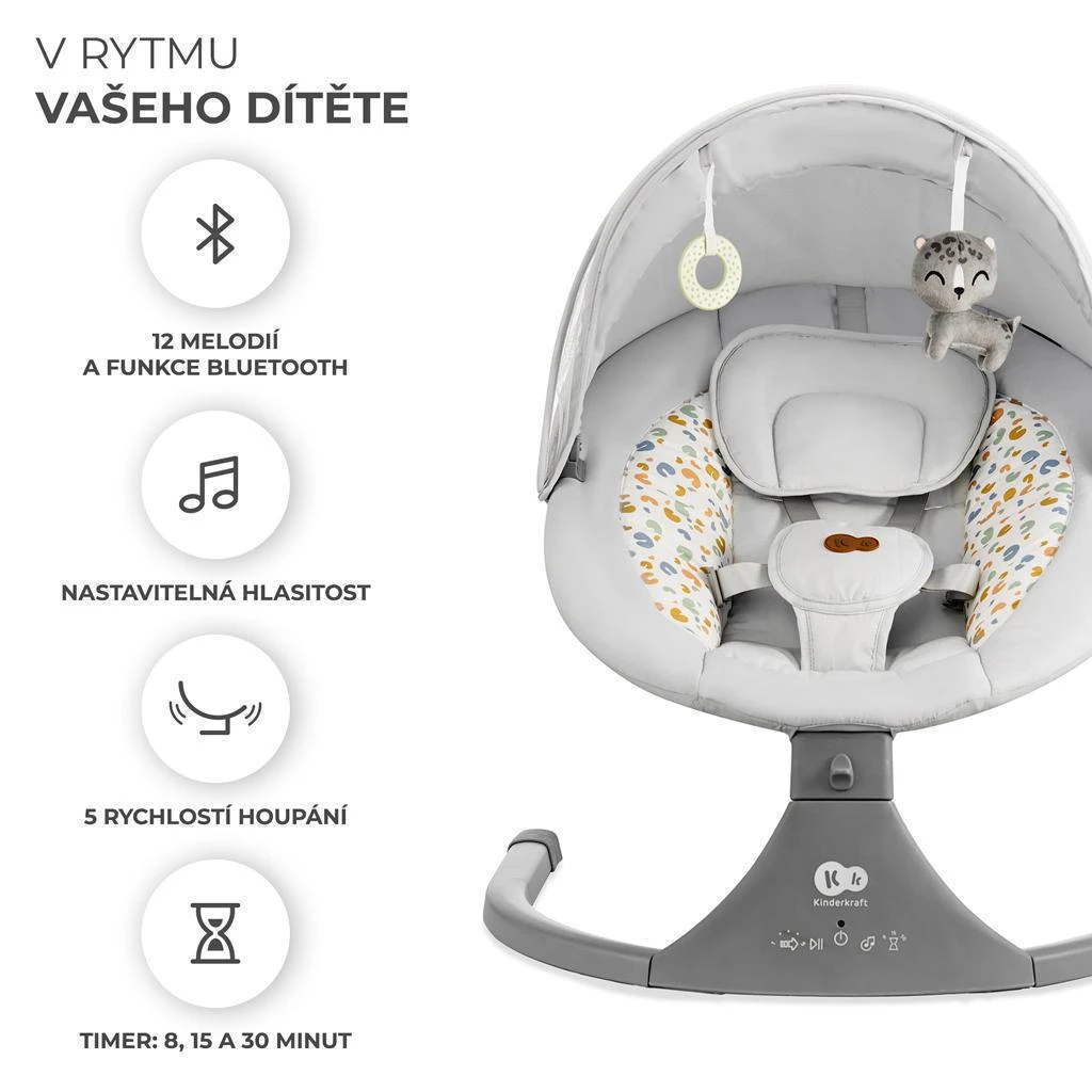 LUMI je súčasne multifunkčným výrobkom, dá sa nastaviť do statickej polohy a používať ako lehátko, ale môžete tiež uvoľniť zámok a začať využívať výhody elektrickej kolísky, ktorú je možné ovládať diaľkovým ovládačom. Kolíska sa odlišuje na trhu tým, že je u nej použitá technológia Bluetooth, vďaka ktorej rodič môže dieťaťu prehrávať jeho obľúbenú hudbu z telefónu. Panel obsahuje aj USB port, ktorý k lehátku umožňuje pripojiť akékoľvek zariadenie. Má 5-stupňové nastavenie rýchlosti kolísania a časovač, ktorý je možné nastaviť na 8, 15 a 30 minút (ak je časovač vypnutý, hojdačka pracuje bez prestávky). Ovládací panel má navyše zabudovaných až 12 príjemných melódií. S týmto lehátkom bude upokojenie dieťaťa alebo jeho kolísanie kým nezaspí ešte jednoduchšie!