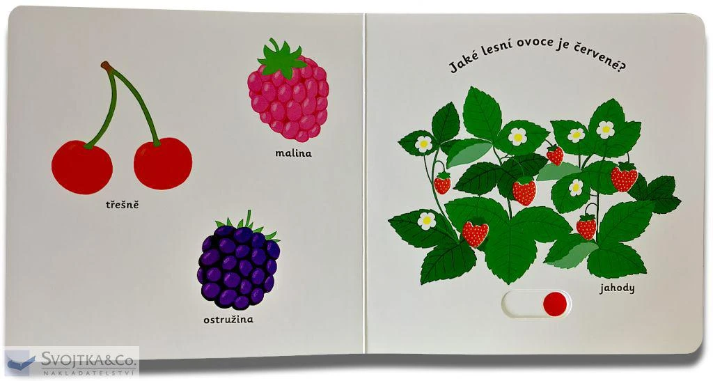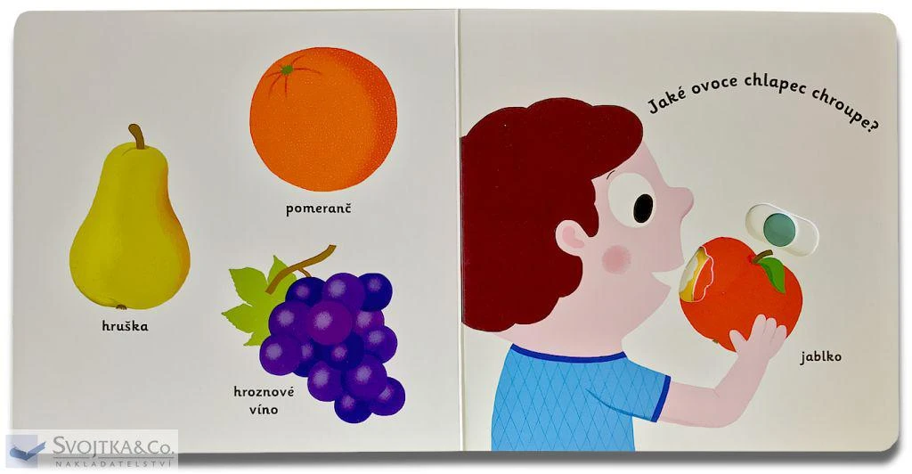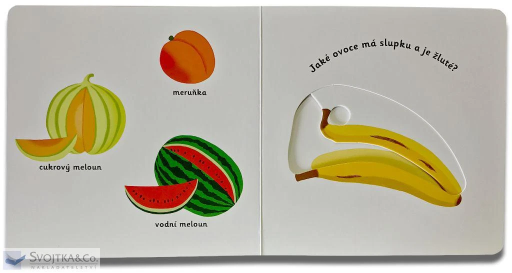 Pestrofarebné ilustrácie a posuvné prvky v tomto leporele zábavnou formou zoznamuje deti s ovocím a farbami. Pohyblivé elementy v tejto knihe rozvíjajú jemnú motoriku dieťaťa a prispievajú k živosti ilustrácií.