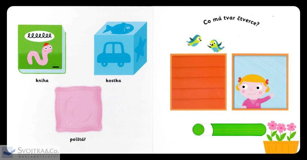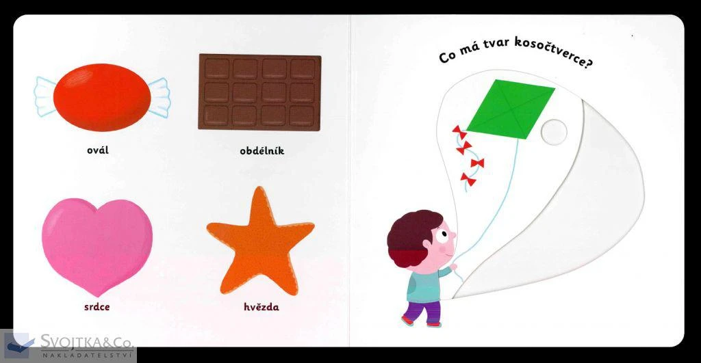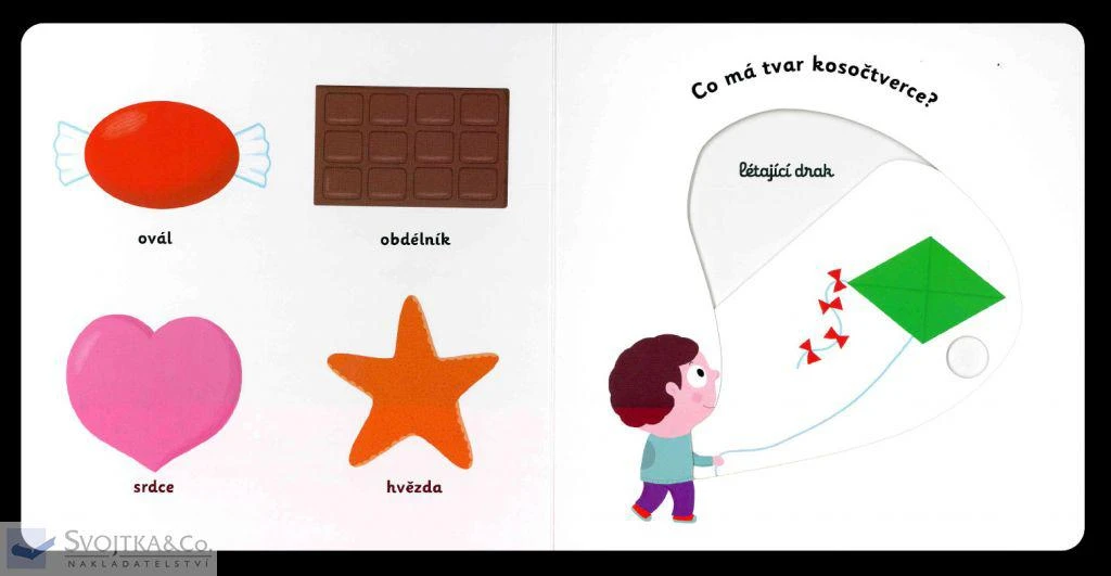 Vieš, čo sú to tvary? Aký tvar má napríklad lietajúci papierový drak? Nauč sa poznávať tvary jednotlivých predmetov! Čo je okrúhle? Čo má tvar štvorca? A čo trojuholníka? Všetky základné tvary objavíš v tomto leporele s pestrými ilustráciami. Knižka je vhodná pre najmenšie deti, ktoré si vďaka nej precvičia jemnú mototriku – obsahuje totiž veľké množstvo najrôznejších pohyblivých častí a okienok, ktoré obrázky oživujú.