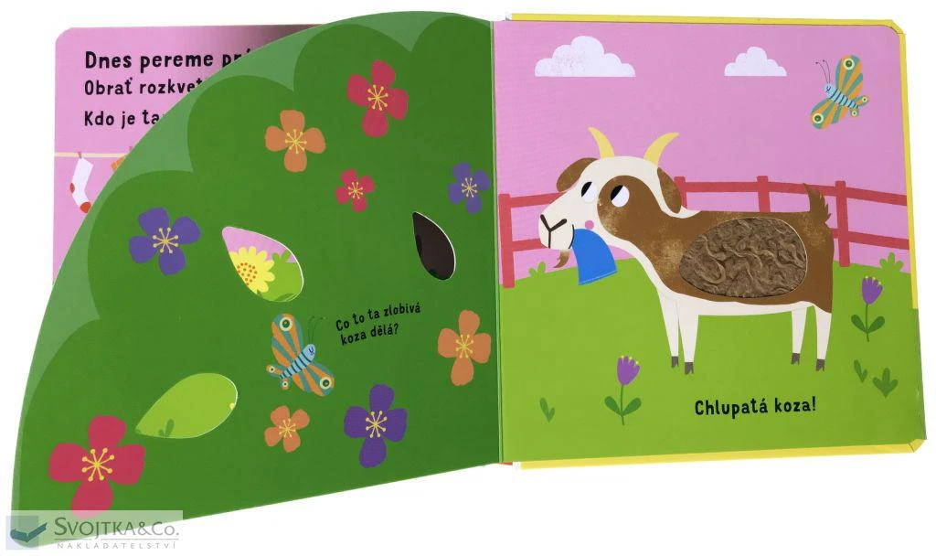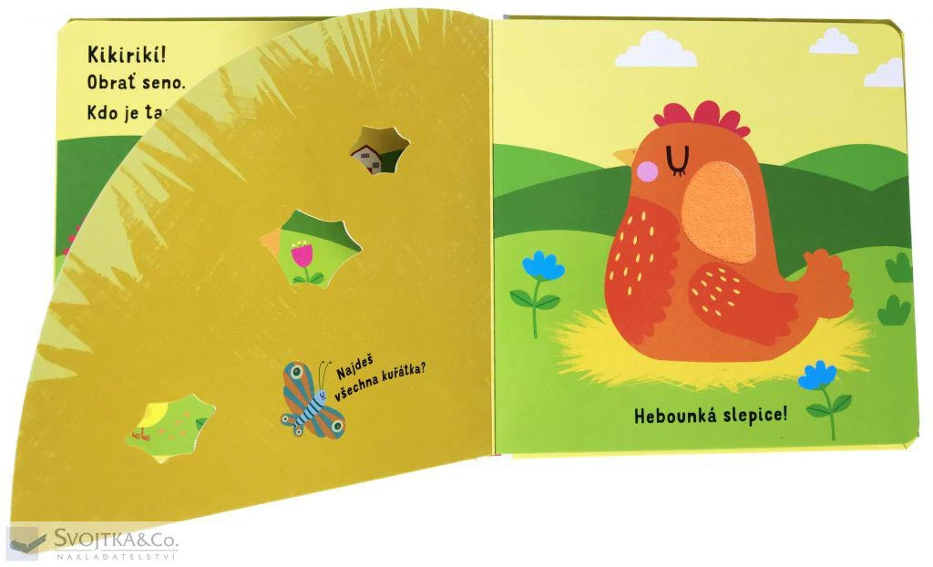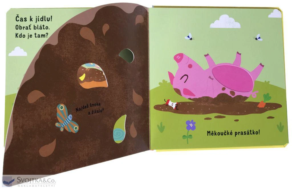 Zisti, ktoré zvieratká žijú na farme, a poznávaj ich dotykom. Ktoré zvieratko je huňaté, chlpaté alebo hebké? Kto sa rád rochní v bahne a kto vysedáva na sene? Výrezy s hmatovými prvkami stimulujú a rozvíjajú zmysly vášho dieťaťa.