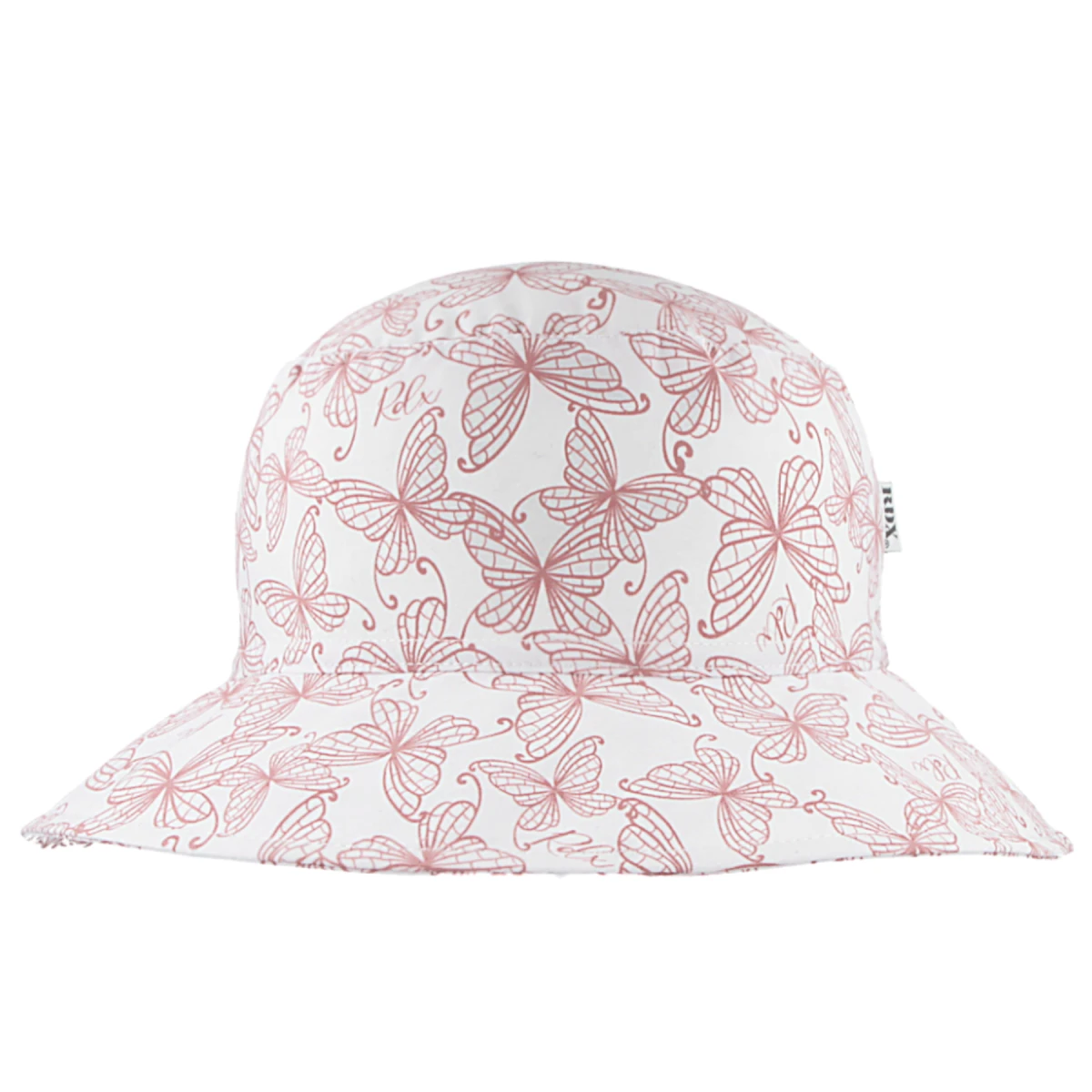 Letné dievčenské klobúk s veľkou krempou motýliky staroružová na bielom