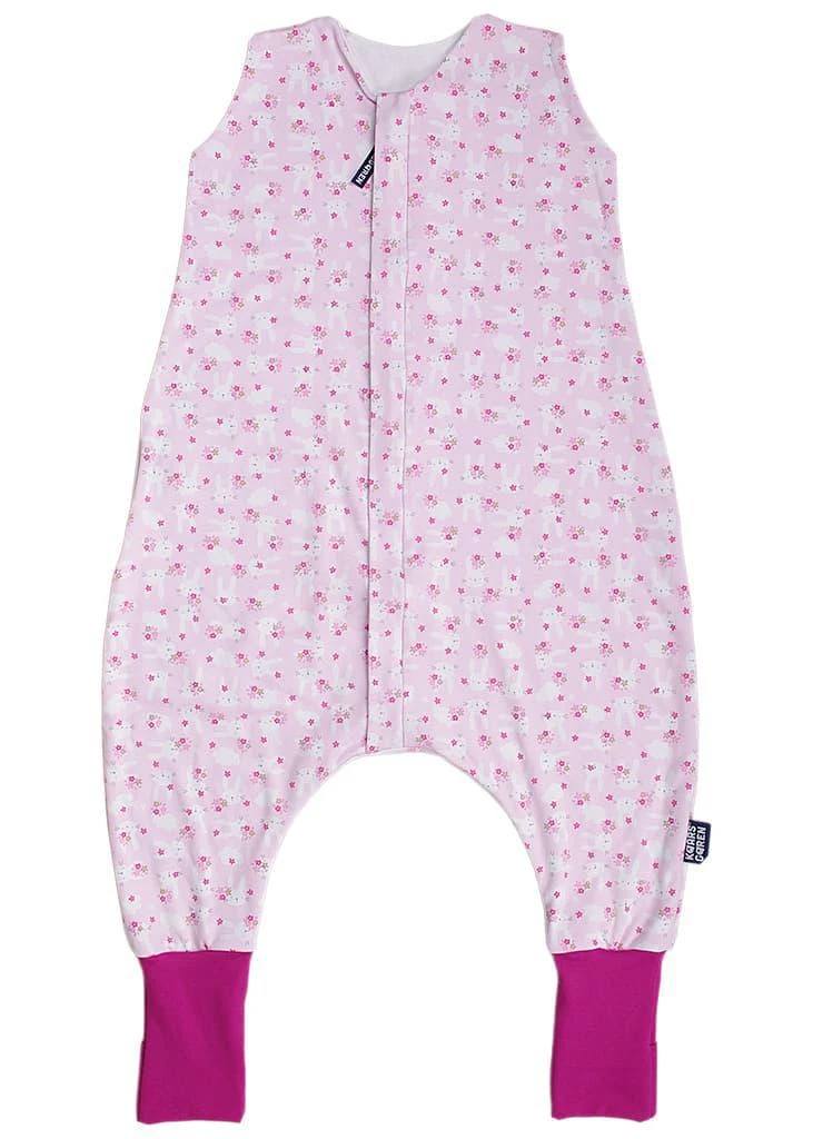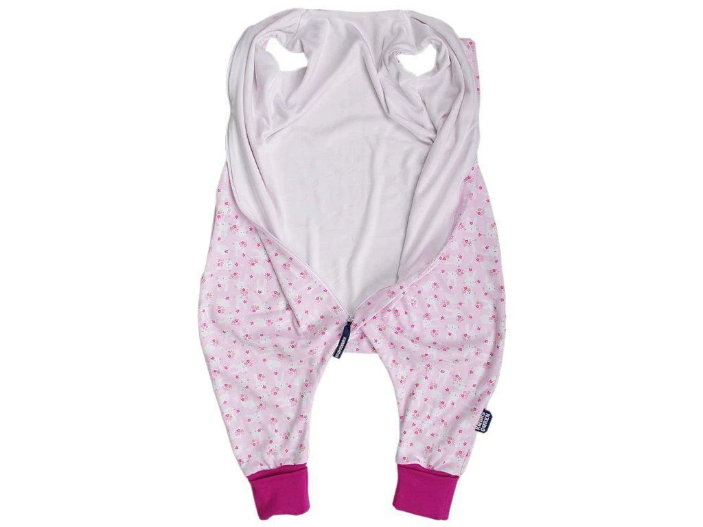 Spací vak je vyrobený z bavlny s motívom ružových zajačikov az mäkkej a priedušnej viskózy z bambusu, ktorý je prirodzene antibakteriálny, šetrný k citlivej pokožke a výborne odvádza vlhkosť. Vďaka zipsu po celom obvode je obliekanie aj prebaľovanie veľmi jednoduché a praktické. Otvory na nohy sú zakončené jemnými manžetami, ktoré držia vrece pohodlne na mieste a zároveň neškrtia. Manžety môžete preklopením uzavrieť a môžu slúžiť ako integrované ponožky, preto nie sú zahrnuté v dĺžke spacieho vaku, sú navyše. Pokiaľ manžety neohnete alebo nepreklopíte, tak spacík nimi predĺžite o cca 10 cm.