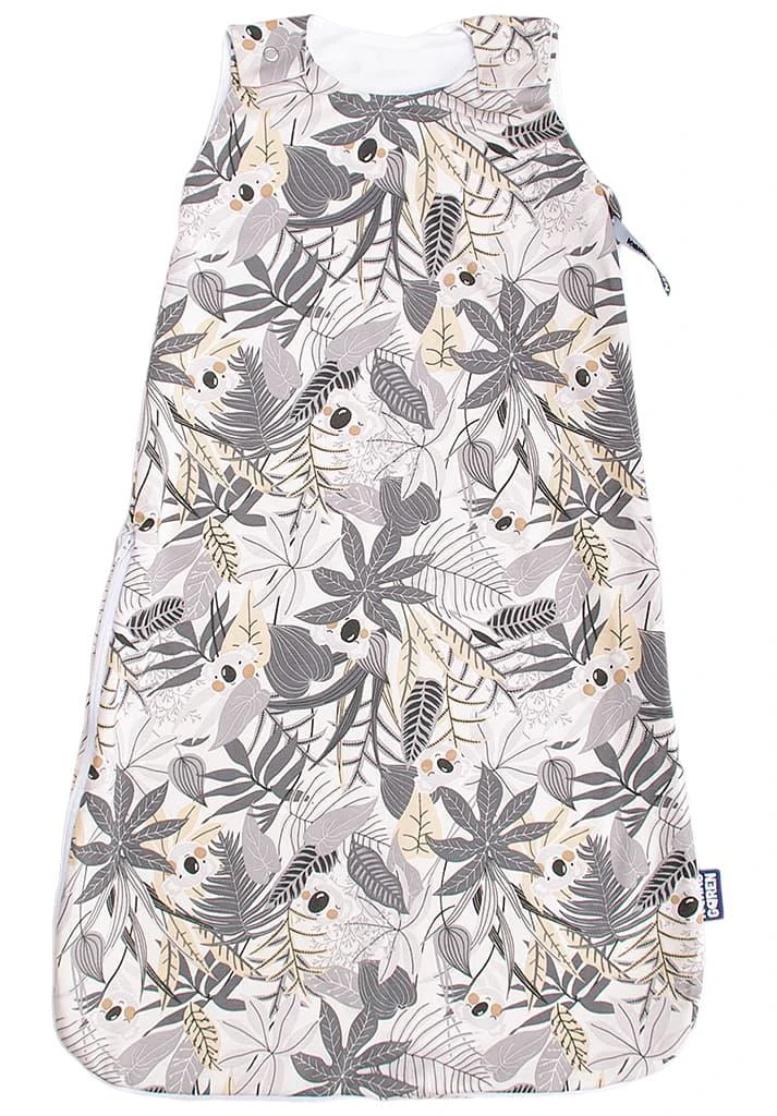 Letný spací vak so zipsom na boku koala sivá