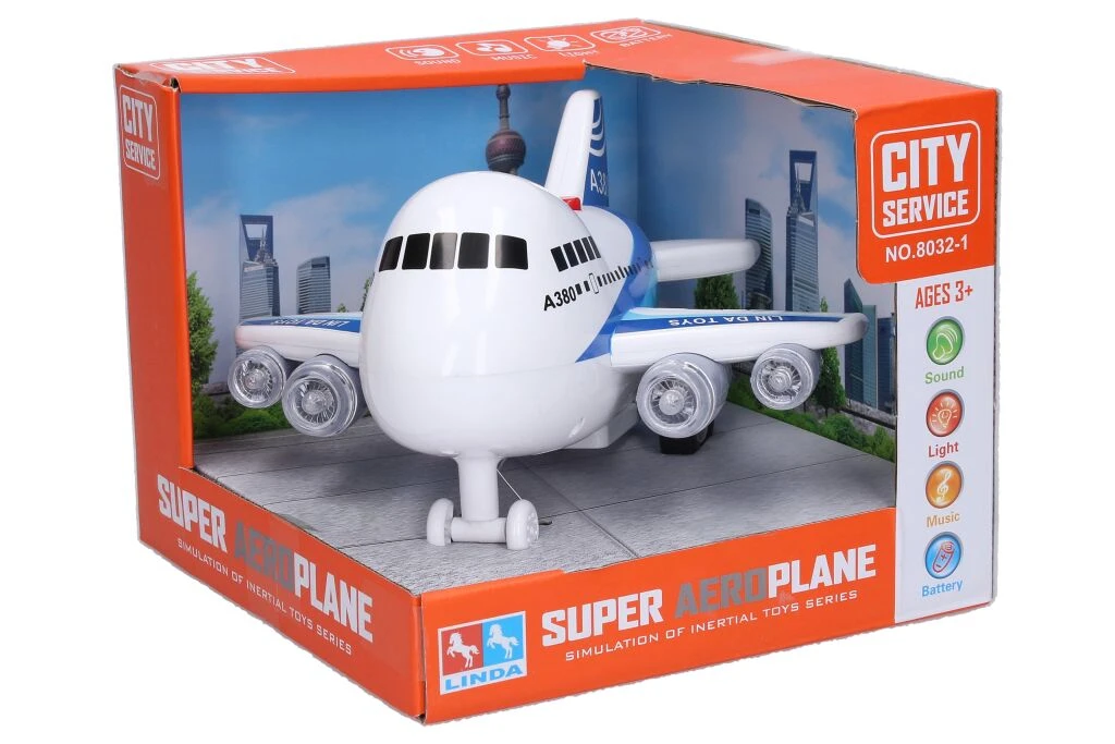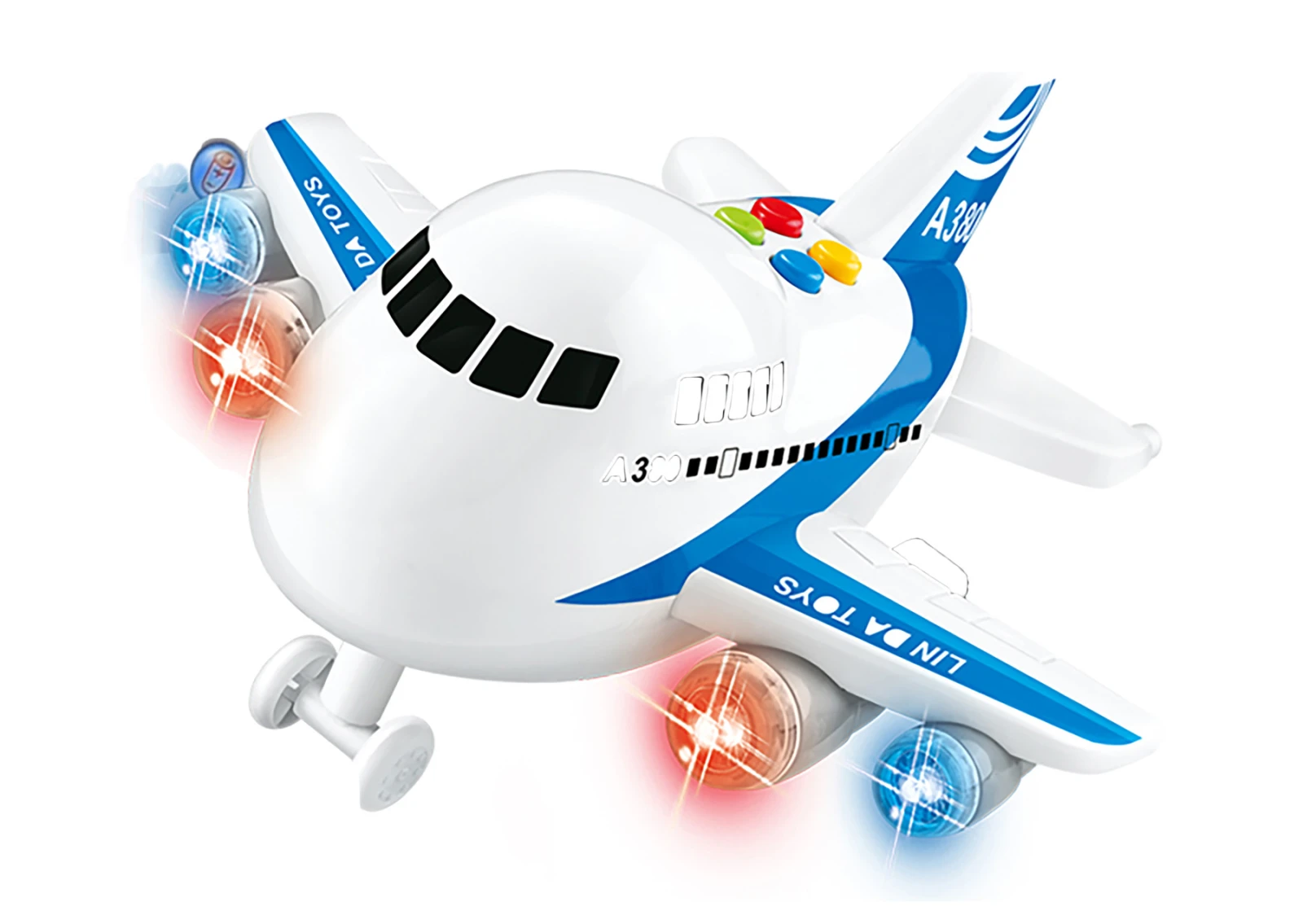 Lietadlo na zotrvačník vydáva svetelné a zvukové efekty., ktoré sa aktivujú tlačidlami na streche.