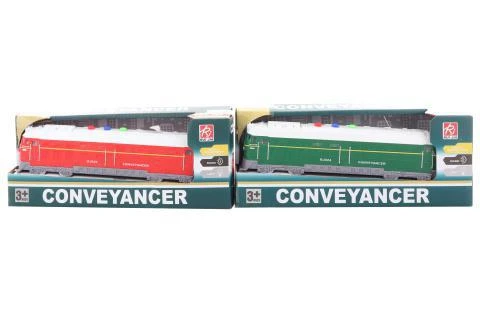 Plastová lokomotíva na batérie. Po stlačení vydáva zvuky. Napájanie na 3 AG13 batérie (sú súčasťou). Rozmery lokomotívy cca 23 x 5,5 x 4 cm.