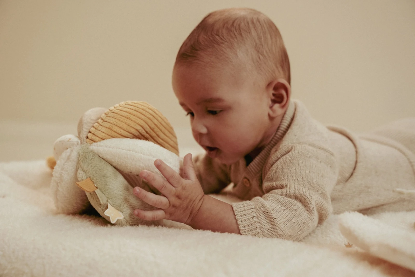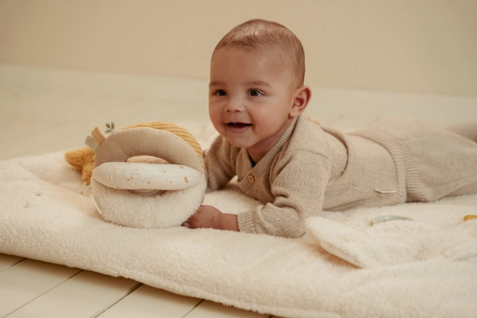 Loptička je súčasťou dizajnovej kolekcie hračiek a doplnkov Little Dutch Newborn Naturals.