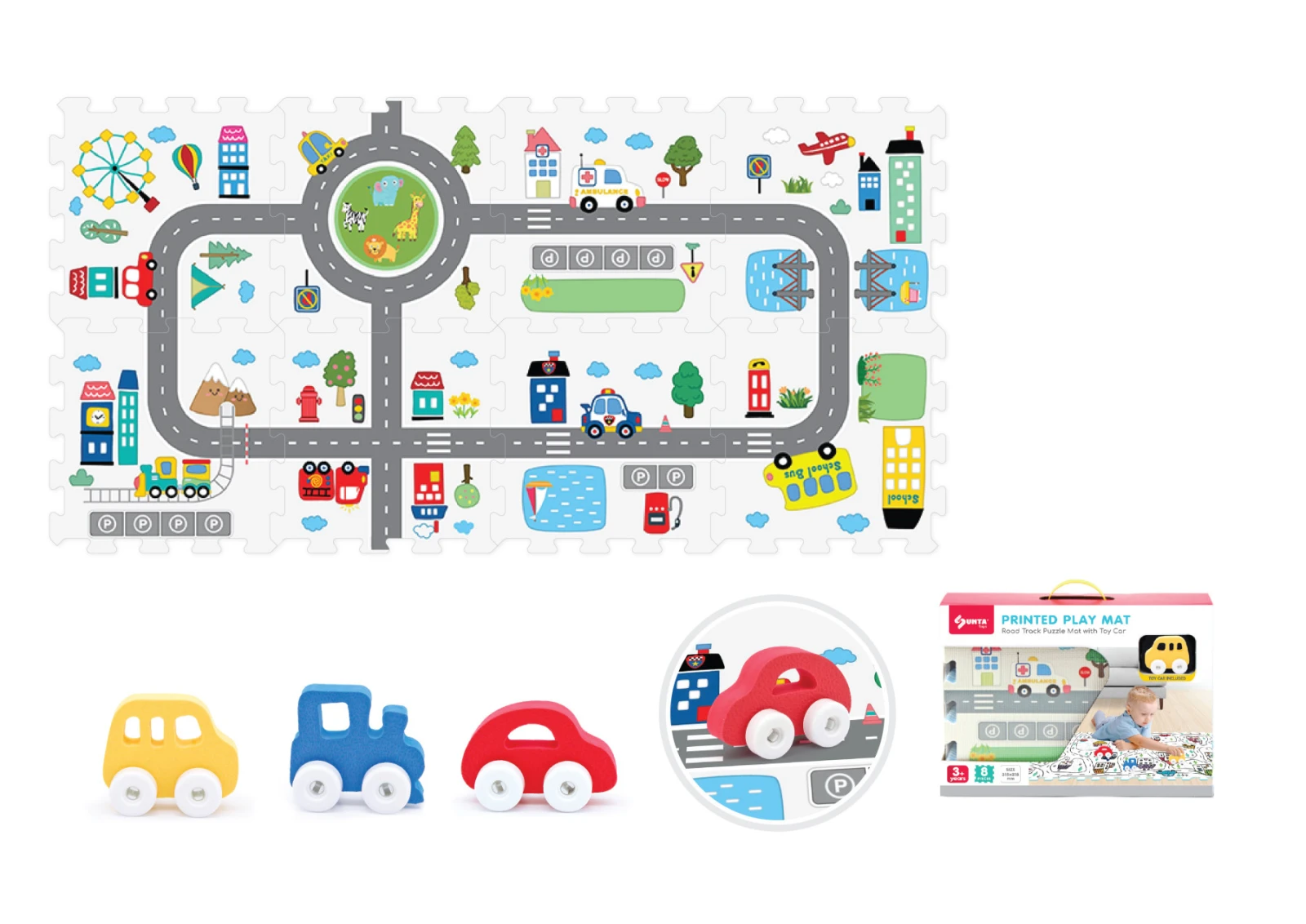 Mäkké bloky s autíčkom v mestskom štýle v sade 8 kusov podporujú detskú kreativitu a umožňujú bezpečné a hravé stavanie prvých vlastných dopravných scén.