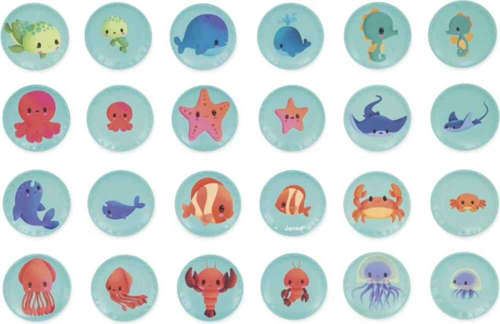 Mäkké obrázkové pexeso do vane Morské zvieratká 24 ks Janod