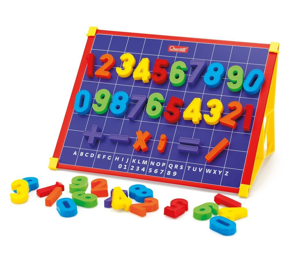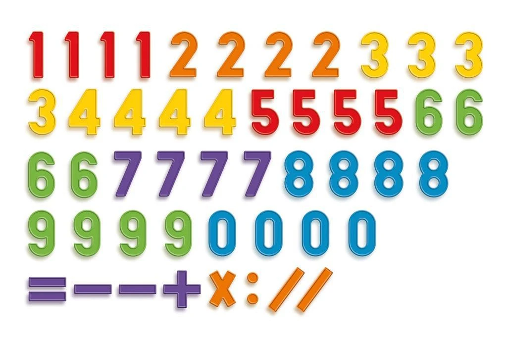 Magnetická tabuľka použiteľná 2 spôsobmi, tj. na skladanie jednoduchých početných úloh alebo na písanie a kreslenie zmazateľným popisovačom na druhej strane. Súprava obsahuje 48 magnetických číslic a znamienok, ktoré spoločne s písacími potrebami po ukončení hry uložíte do 2 podlhovastých puzdier.