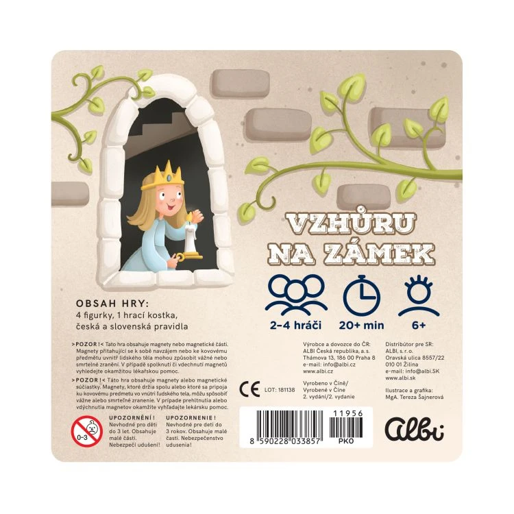 Hra obsahuje: magnetický herný plán, magnetické figúrky, hraciu kocku