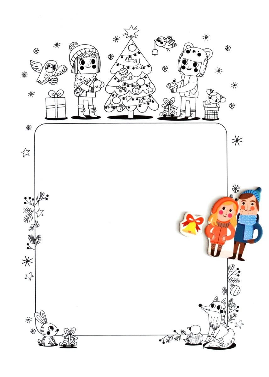 Medzi magnetkami nájdete napríklad vianočný stromček, ozdoby, darčeky, snehuliaka, sánky, Mikuláša s vrecom plným dobrôt, perníčky alebo postavičky detí, rodičov, starých rodičov, roztomilých zvieratiek a ďalšie. A čo je pre deti jedným z najkúzelnejších momentov Vianoc? Predsa písanie listu pre Ježiška. Na deti preto čaká v knihe prekvapenie - list Ježiškovi vo forme omaľovánky. Stačí ho vyfarbiť a nakresliť, alebo napísať svoje tajné priania.