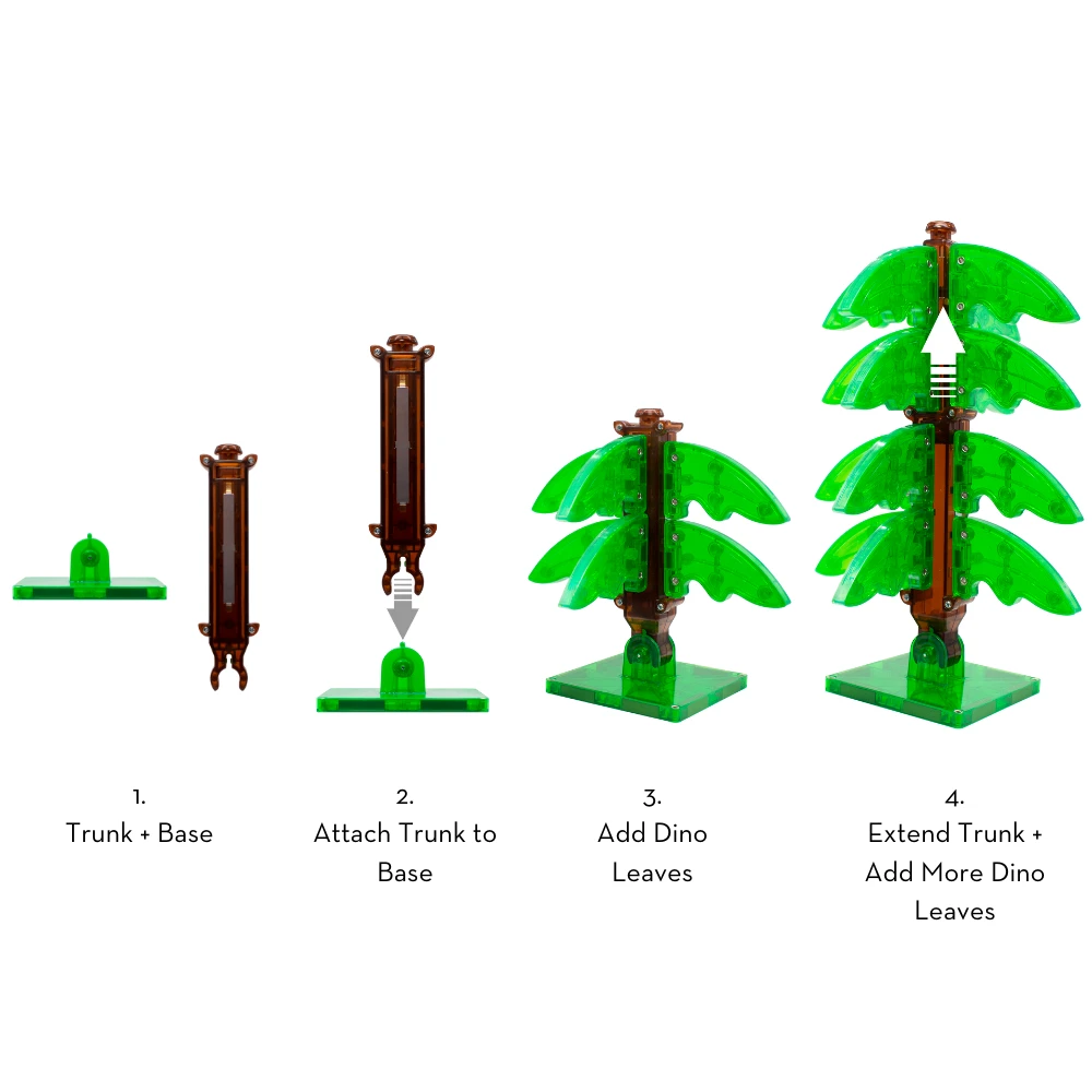 Obsahuje šesť magnetických figúrok dinosaurov, ktoré sa líšia veľkosťou a všetky majú pohyblivé časti pre ešte zábavnejšiu imaginárnu hru. V spojení s magnetickými stromami a listami si vybudujete dokonalý tropický raj. Deti okrem jemnej motoriky a logiky zároveň rozvíjajú záujem o paleonotológiu. Stavebnica je kompatibilná so všetkými sadami MAGNA-TILES®.