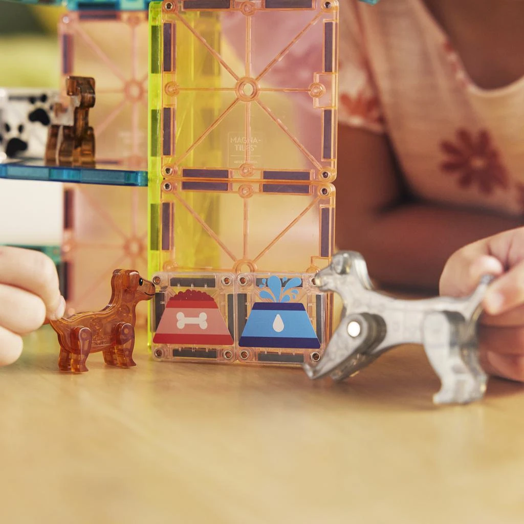 Vitaj v Puppy Parku MAGNA-TILES, kde sa malé šteniatka menia na veľkých dobrodruhov! Postav im bazén, výcvikovú dráhu alebo útulný kútik na oddych a sleduj, ako sa tvoj vlastný svet plní štekaním, zábavou a fantáziou.