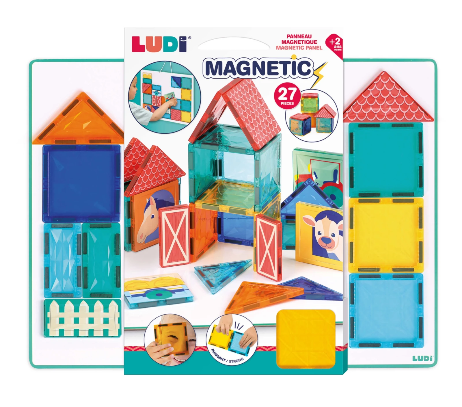 Obsah balenia: 1× biela magnetická tabuľa so šnúrkou na zavesenie, 27 magnetických dielikov