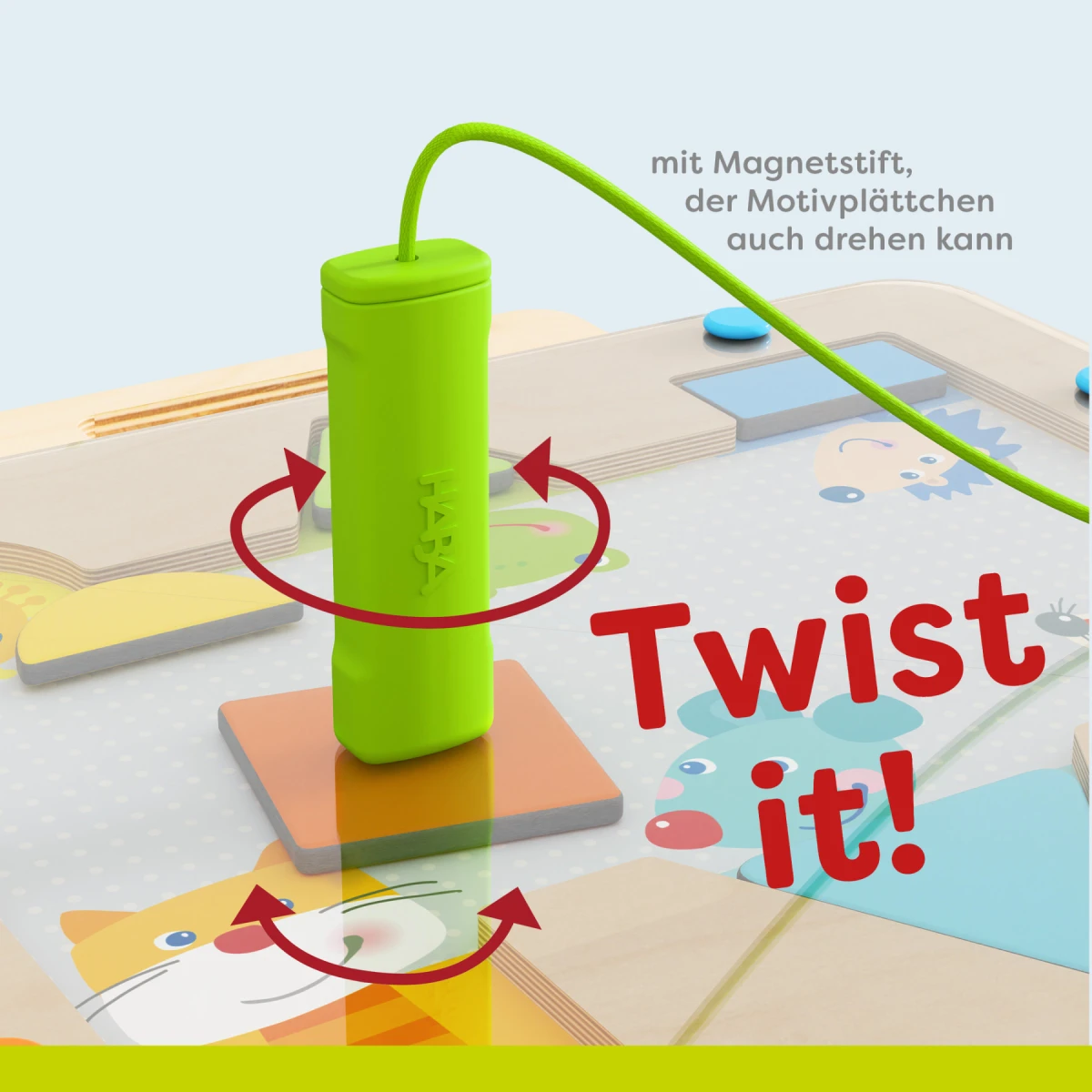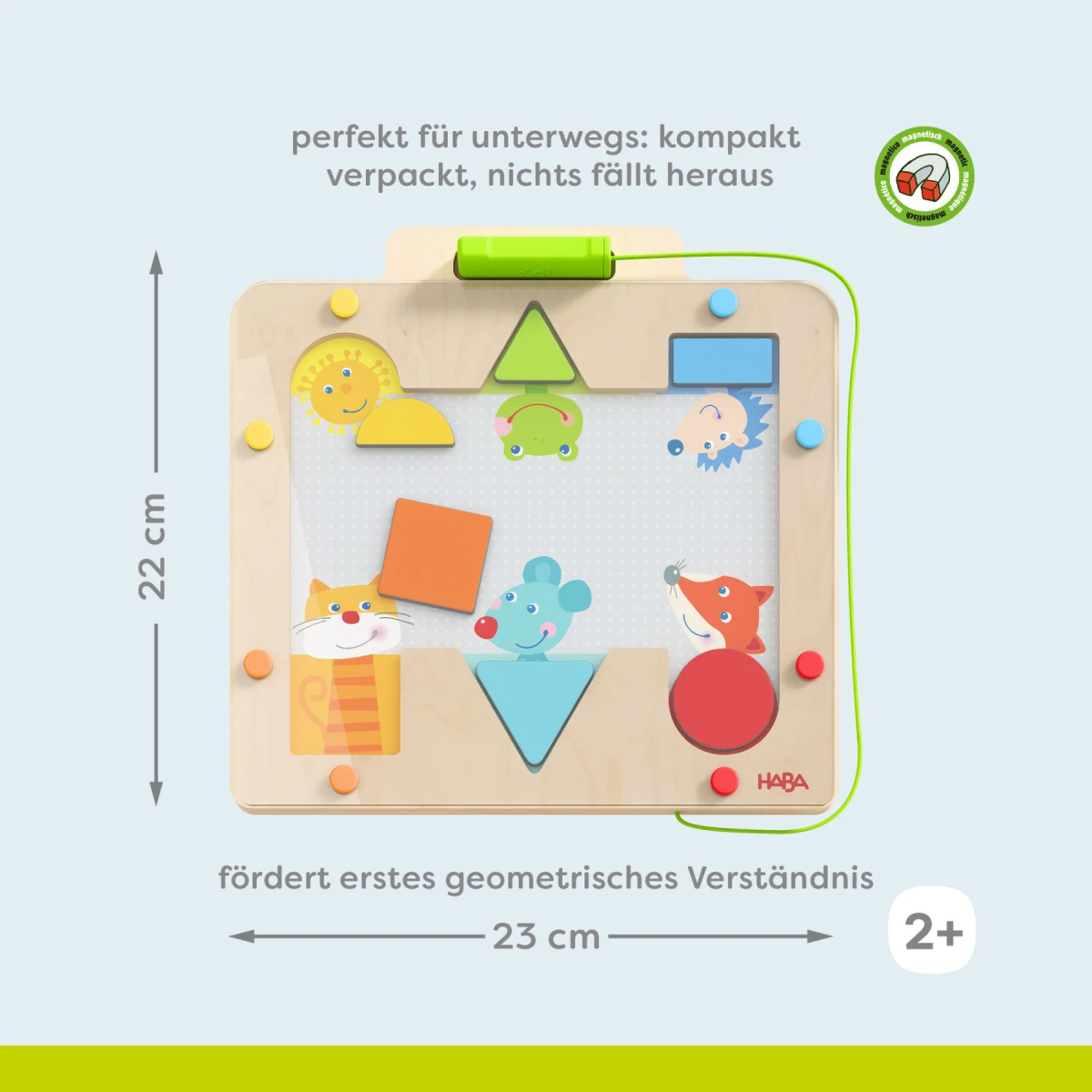 Zvieratá potrebujú pomoc detí, aby našli tie správne časti svojho tela. Pomocou magnetického pera môžu deti jednoducho presunúť dlaždice s geometrickými obrázkami na miesto.