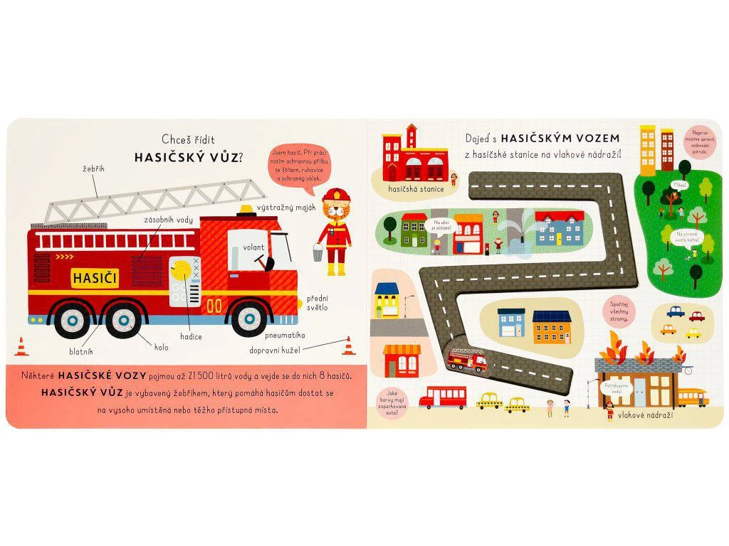V tomto leporele sa zoznámiš s časťami jednotlivých strojov a vozidiel a prejdeš posuvnými kolieskami ako s vozidlami trasy a spoznáš prácu záchranárov.