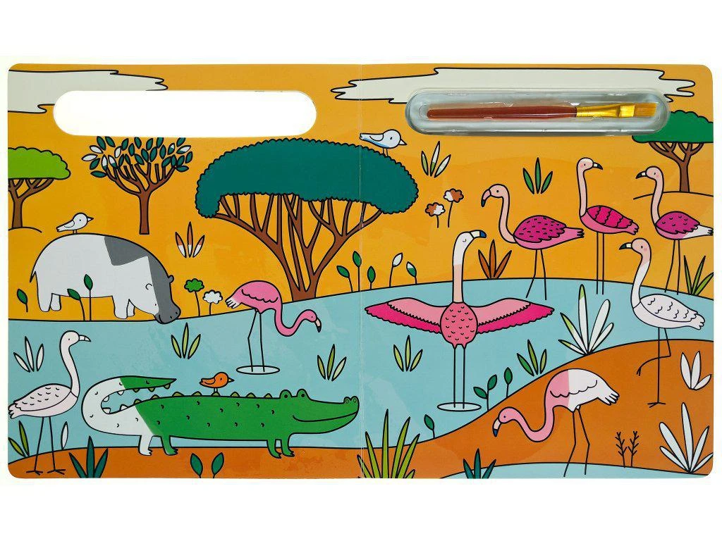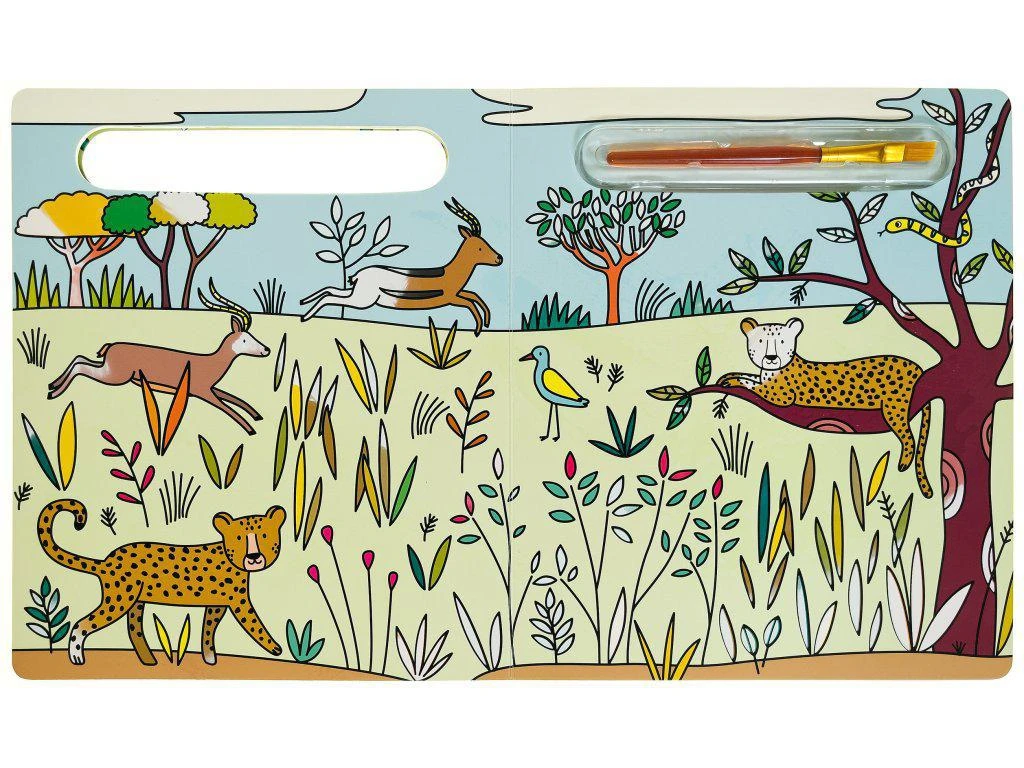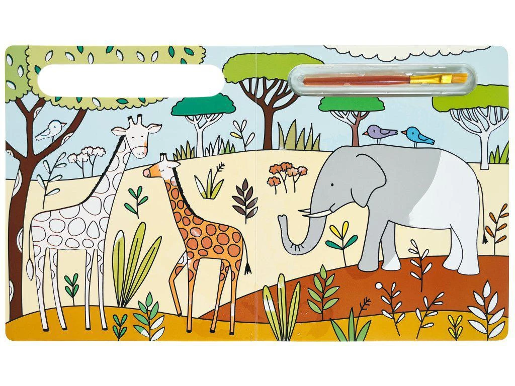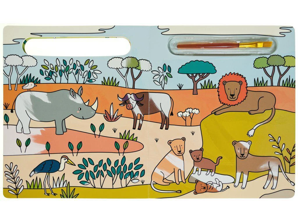 Knižka zaručí nekonečné hodiny zábavy, čiastočne farebné obrázky so zvieratami zo savany sa dajú vymaľovávať stále dookola, stačí len pridať vodu.