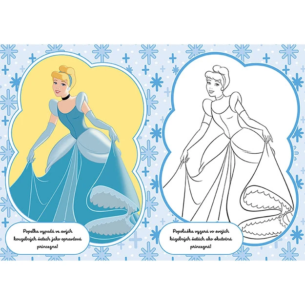 Omaľovánky A5 Disney Princezné prinášajú deťom zábavu pri vyfarbovaní obľúbených rozprávkových motívov. Omaľovánky obsahujú 9 čiernobielych obrázkov na vyfarbenie a 9 farebných predlôh , ktoré môžu deťom slúžiť ako inšpirácia pri vyfarbovaní.