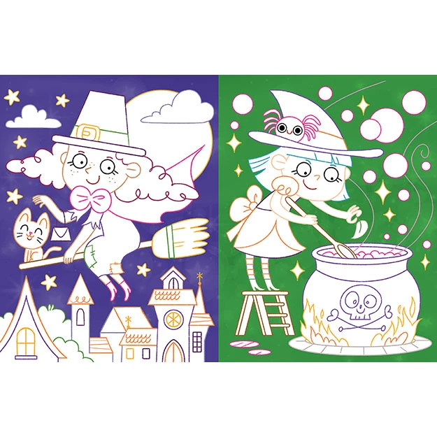 Maľovanky so svietiacim tetovaním Strašidlá a čarodejnice prinášajú deťom kúzelnú zábavu plnú tajomnej atmosféry, pri ktorej si môžu vyfarbiť strašidelné obrázky a ozdobiť sa svietiacimi tetovaniami pre ešte väčší efekt.