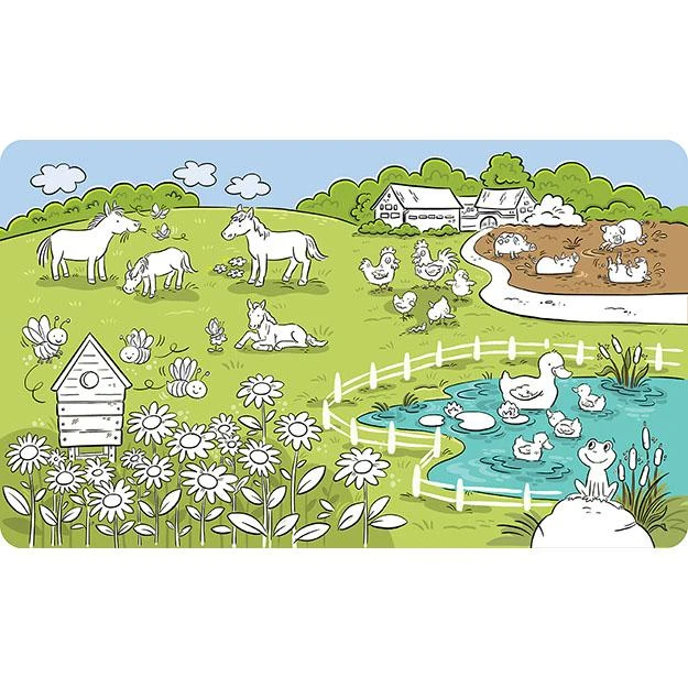 Titul obsahuje 10 krásne farebných strán s obrázkami. Po aplikácii vody sa farba objaví a po zaschnutí opäť zmizne, obrázky je možné vďaka tomu maľovať opakovane. Pero na vodu je súčasťou balenia.