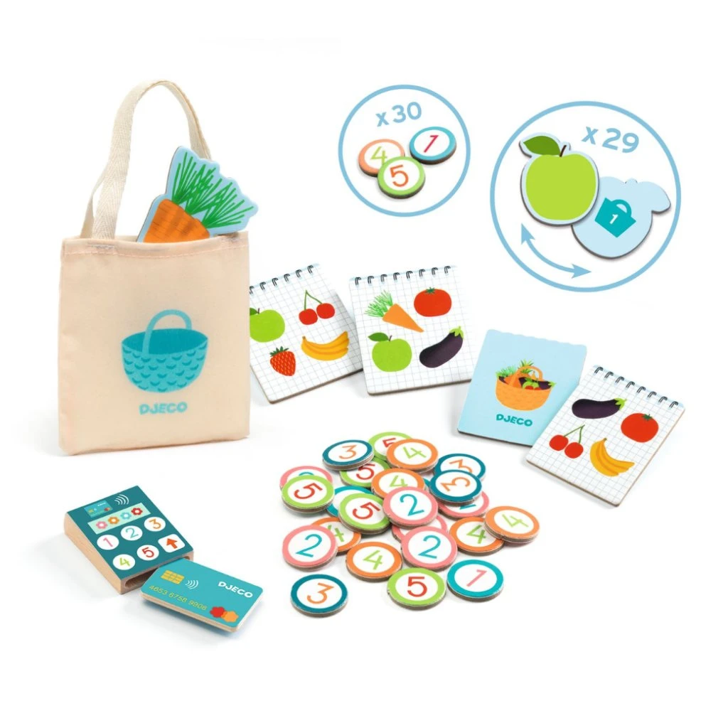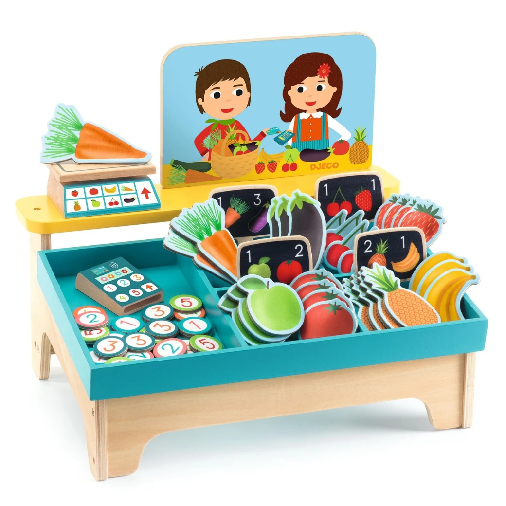 Úloha-play hry, ako je obchod, sú skvelé pre rozvoj reči aj sociálnych zručností. Deti pomenovávajú ovocie a zeleninu, učia sa čísla aj jednoduché vety („Prosím jablko.“, „Koľko to stojí?“). Hra na predavača a zákazníka prirodzene vedie k dialógu, k precvičovaniu otázok a odpovedí ak obohateniu slovnej zásoby o nové pojmy z každodenného života.