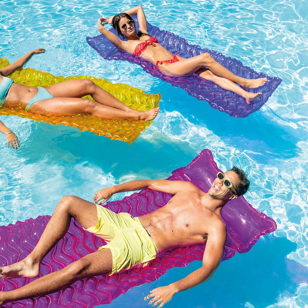 Užite si letnú pohodu naplno s nafukovacím lehátkom Intex, ktoré je navrhnuté pre maximálnu relaxáciu aj praktickosť. Vďaka šikovnému dizajnu vás jemne nadnáša, zatiaľ čo časť tela zostáva vo vode, čo prináša príjemné ochladenie aj počas horúcich dní.