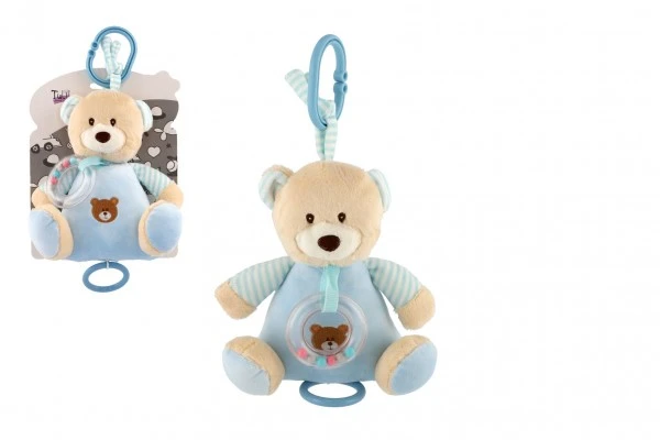 Naťahovací plyšový medvedík hrá príjemnú melódiu, ktorá bábätko upokojí a pomáha mu pri zaspávaní. Medvedík má pri krku hrkálku a možno ho zavesiť za pomoci klipu.
