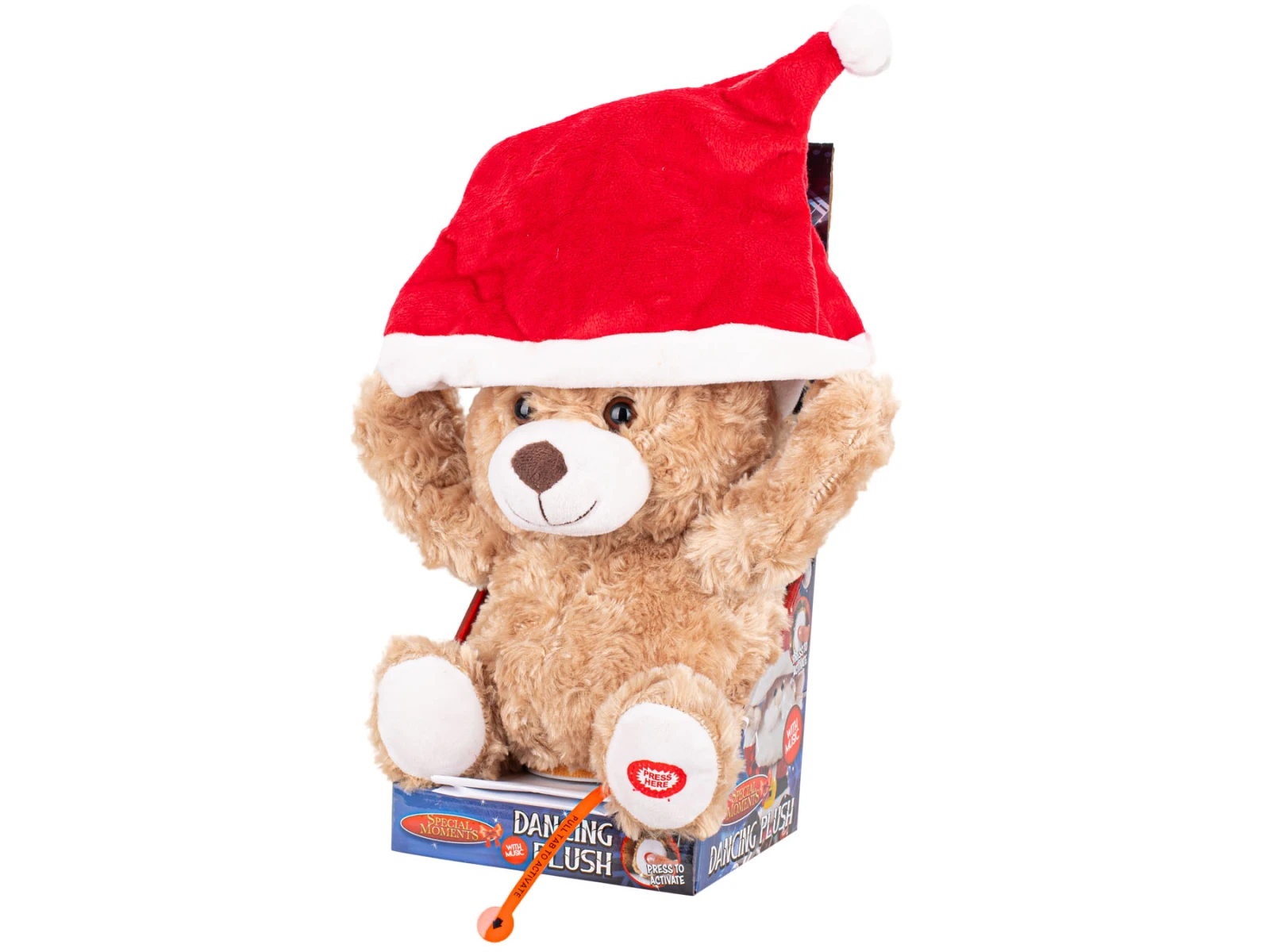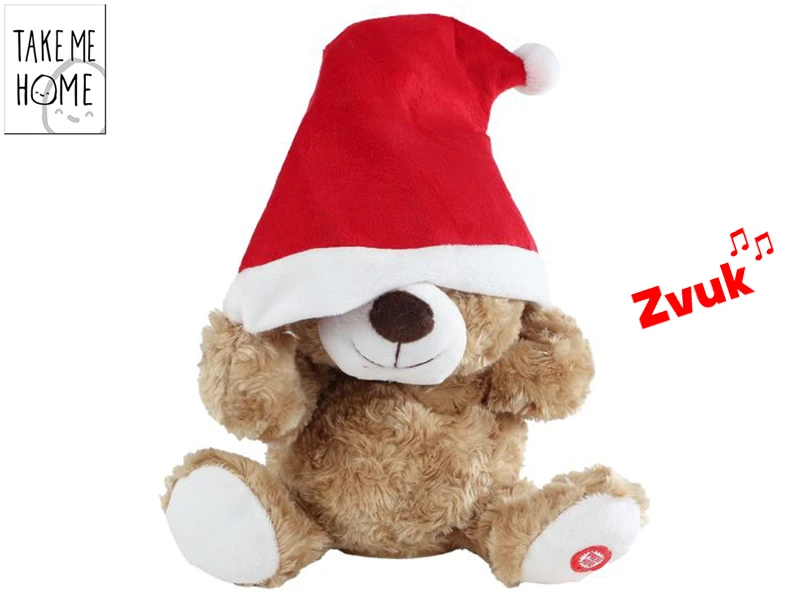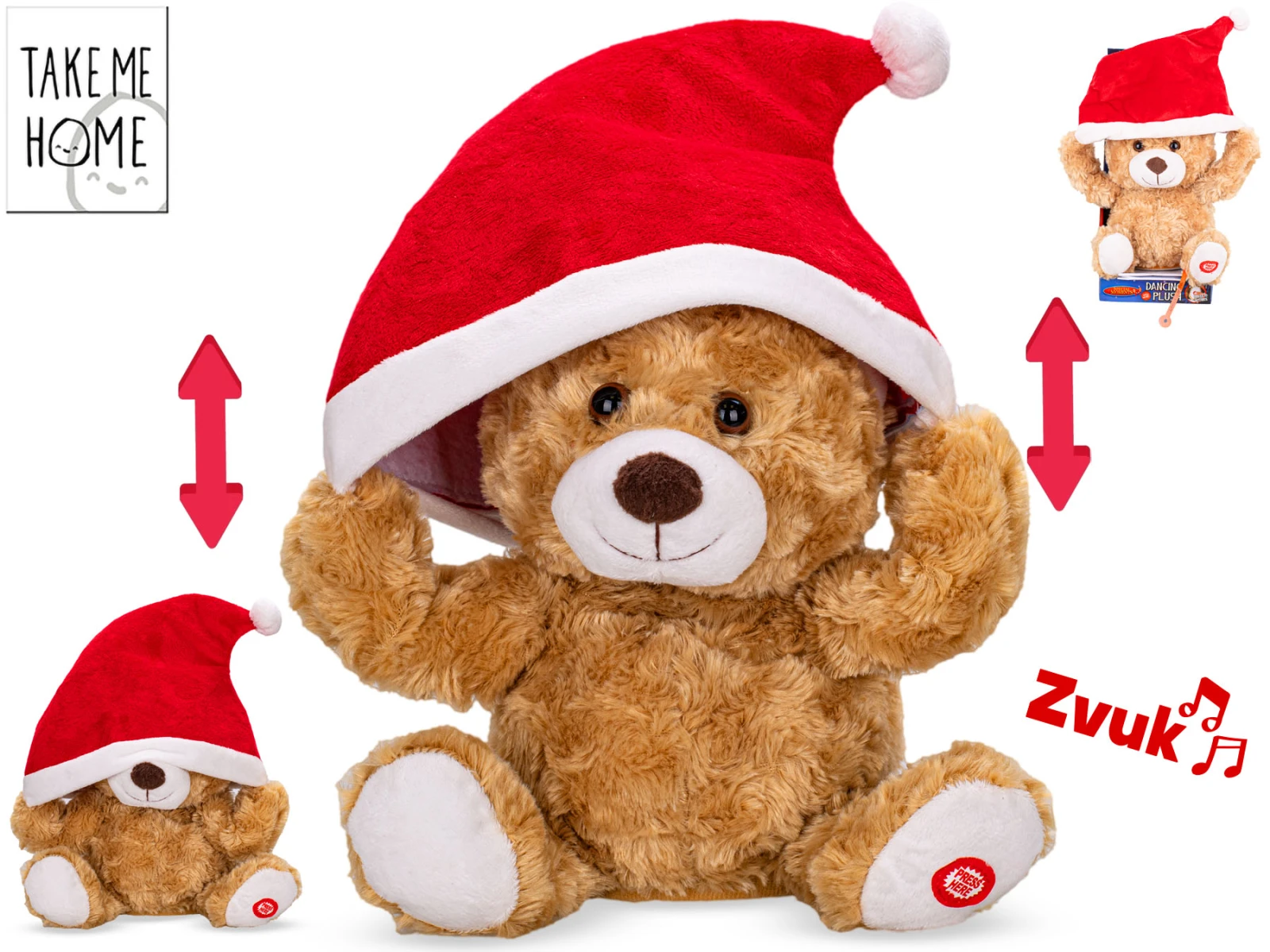 Medveď plyšový nasadzujúci si santovskú čiapku so zvukom Take Me Home.