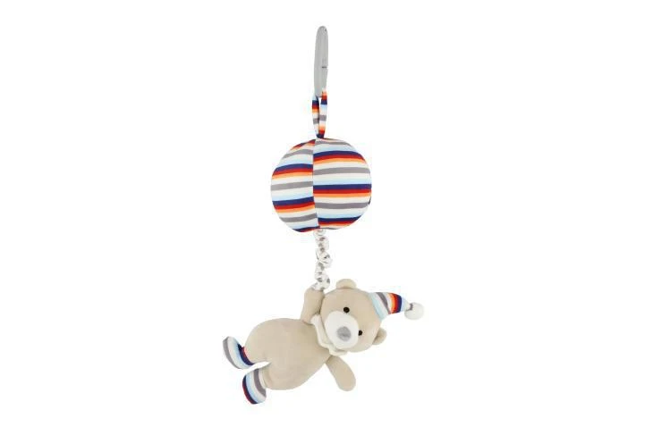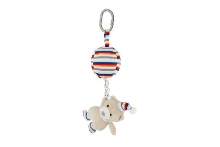 Hrací strojček je zabudovaný vo vnútri balne, zatiahnete za medvedíka a tým melódiu spustíte.