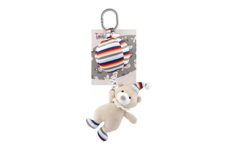 Medveď s balónom plyšový 30 cm na postieľku / kočík naťahovací hrací strojček